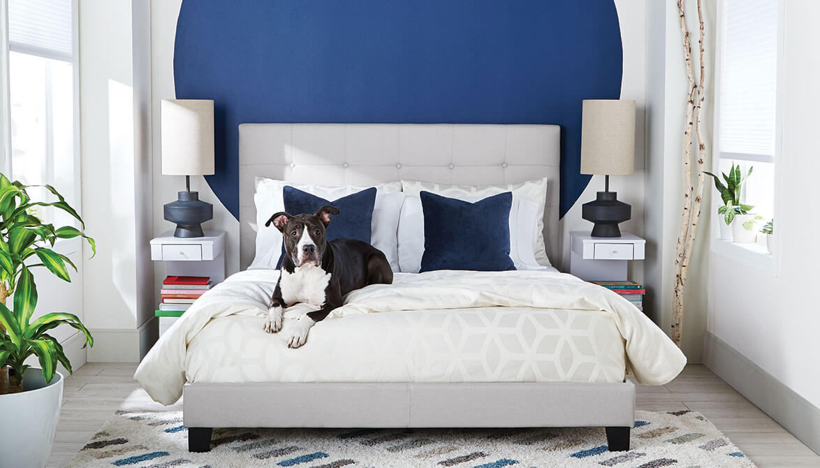Agencez l'ivoire et le bleu marine pour une combinaison de couleurs qui ne se démodera jamais. Ajoutez un attrait visuel avec des motifs aux teintes retrouvées dans la même palette de couleurs et mélangez les textures, du lin rugueux jusqu'à la chenille noueuse.