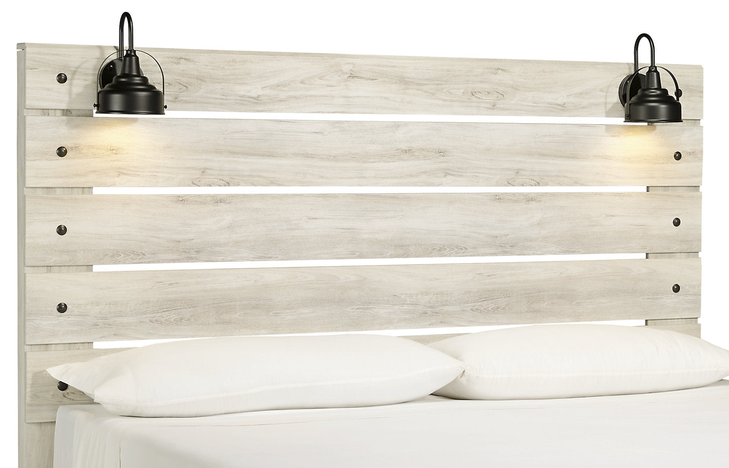 Détails décoratifs | Des clous décoratifs foncé et des espacements entre les lattes confèrent à cette tête de lit une allure rustique traditionnelle. |
