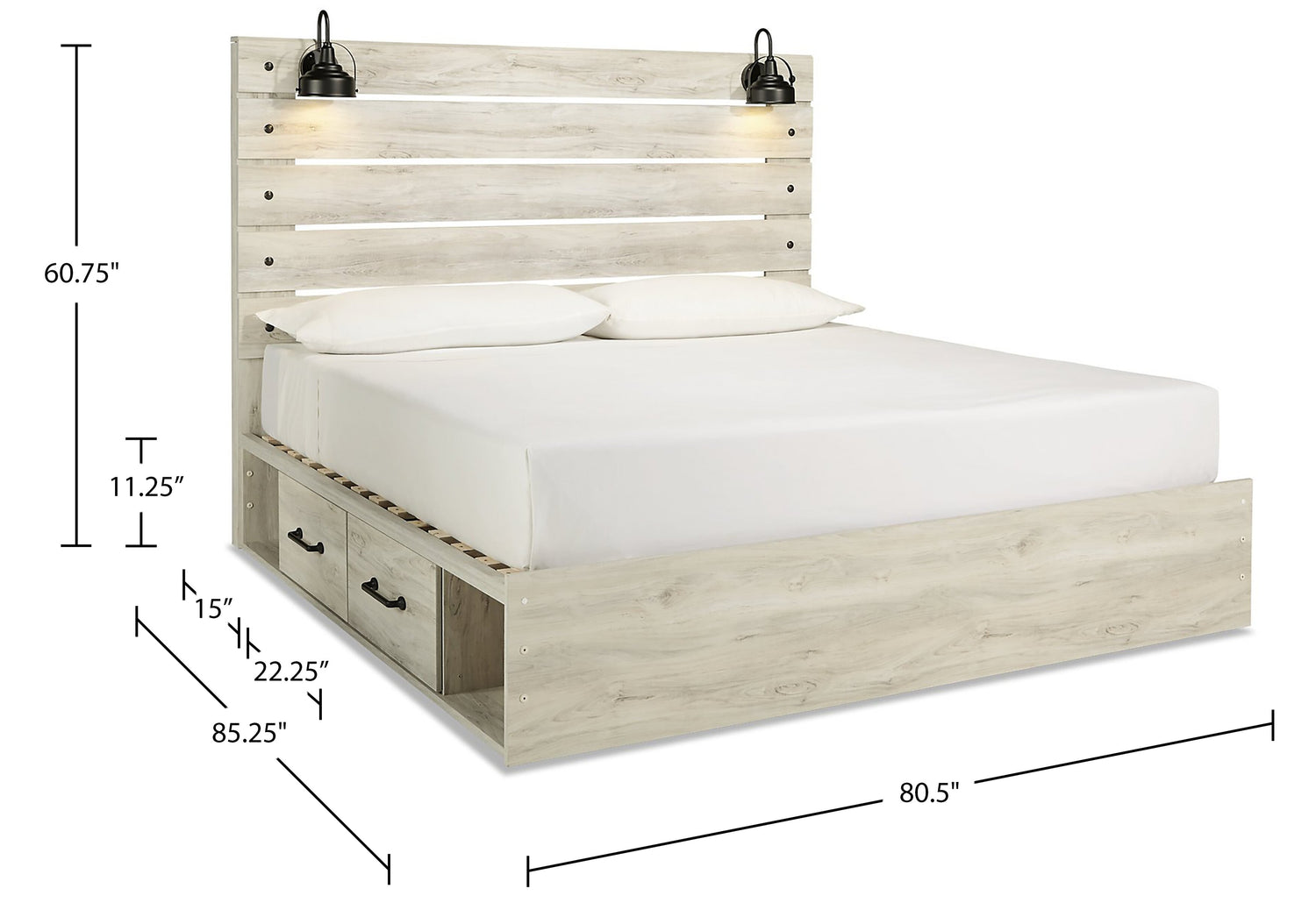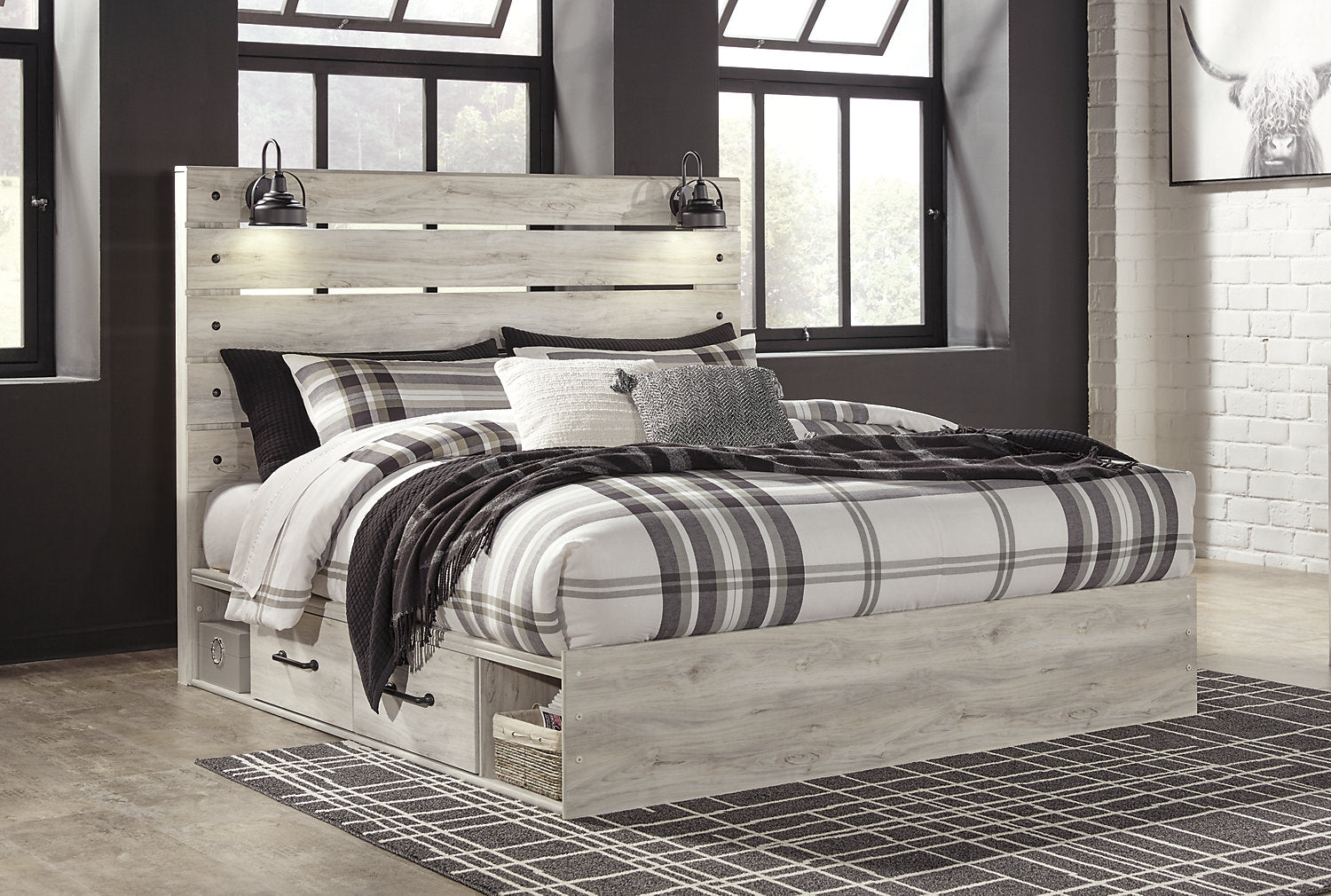 Options de rangement | Quatre spacieux tiroirs et quatre compartiments ouverts intégrés sur les côtés du lit ajoutent un espace de rangement supplémentaire à votre chambre. |