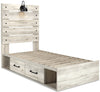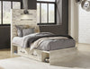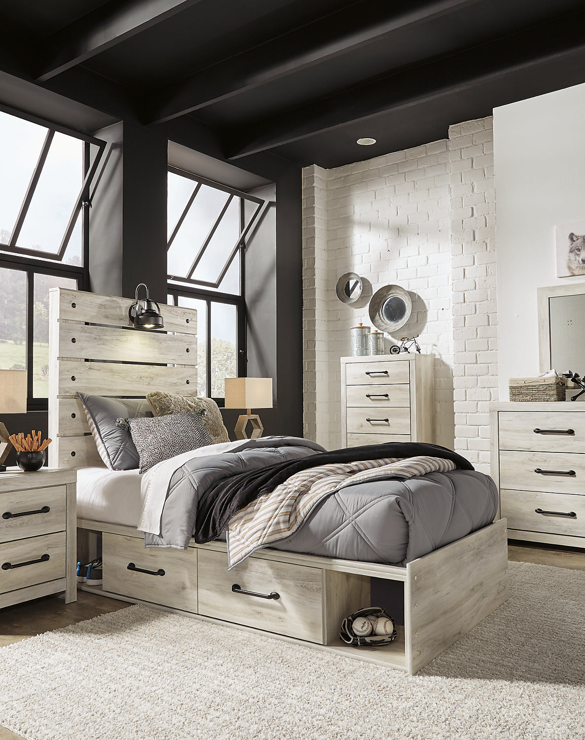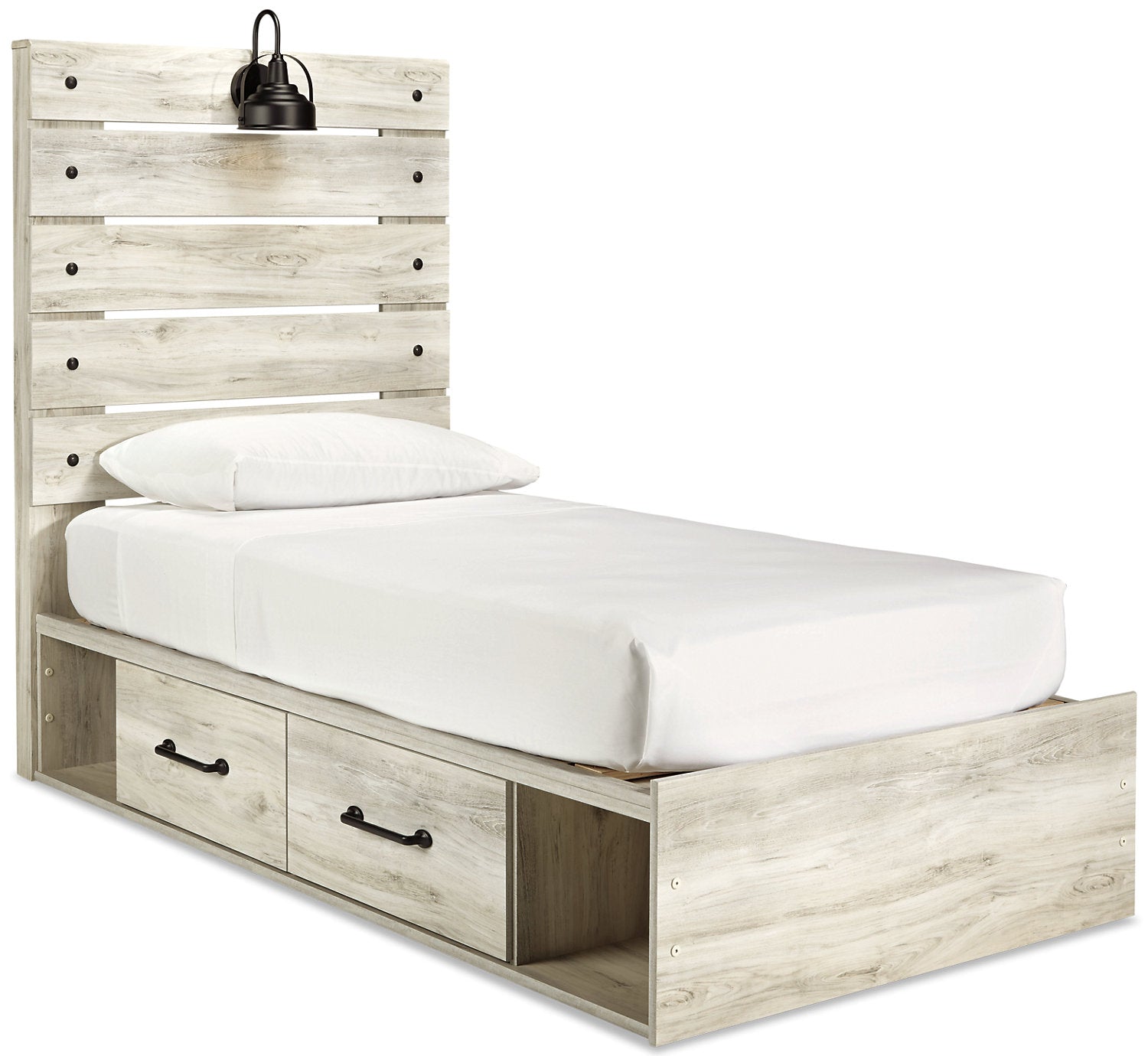 Options de rangement | Quatre spacieux tiroirs et quatre compartiments ouverts intégrés sur les côtés du lit ajoutent un espace de rangement supplémentaire à votre chambre. |