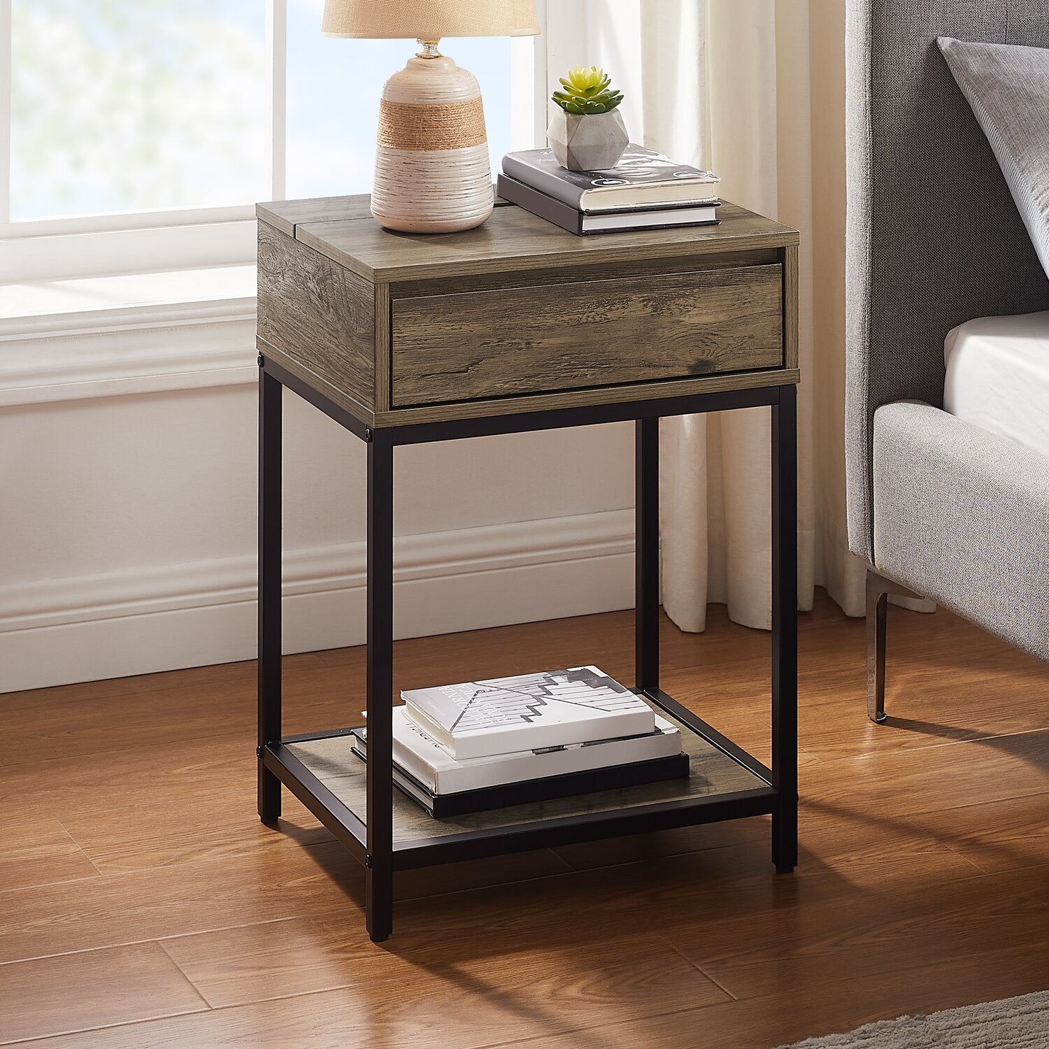 | Options de rangement | Gardez les essentiels de chevet rangés dans le tiroir, les souvenirs spéciaux dans le compartiment de rangement secret à dessus relevable et des couvertures additionnelles ou des essentiels |