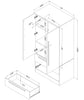 | Options de rangement | Deux tiroirs, trois tablettes (deux réglables) et une tringle pour accrocher des vêtements. |
