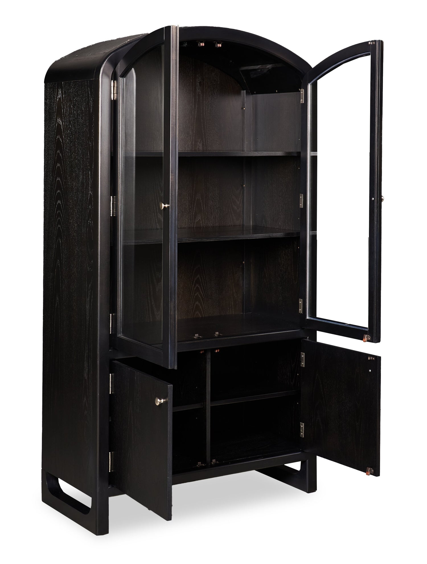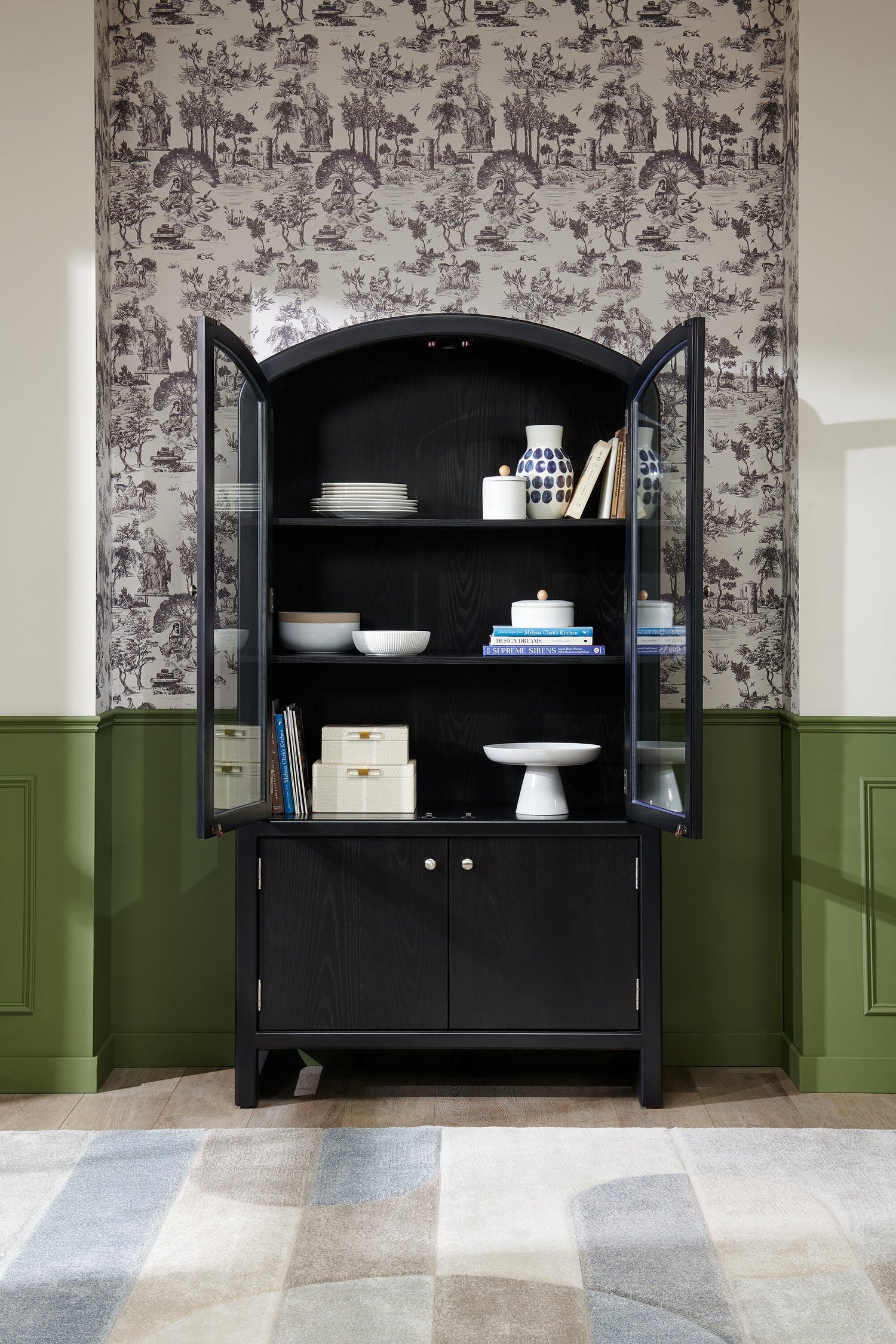 Options de rangement | Exposez la vaisselle et les assiettes précieuses dans l’armoire vitrée et rangez les plateaux et ustensiles supplémentaires dans l'armoire inférieure. |