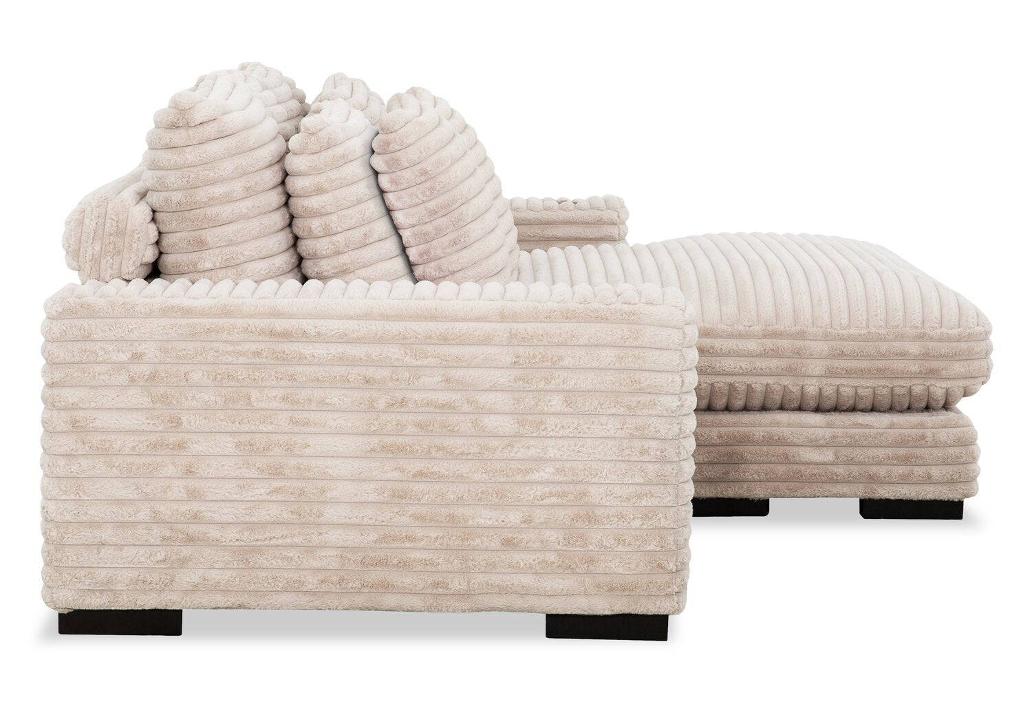Détails décoratifs | Les pattes en bois foncé complètent la teinte beige clair et le tissu doux légèrement rainuré confère une allure et une douceur somptueuses. |