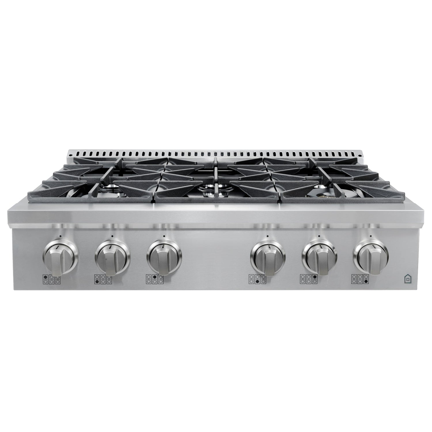 Cette surface de cuisson à gaz de 36 po, conçue de façon experte, possède des grilles en fonte robustes, des boutons de commande audacieux à l’avant et une conception qui conférera une apparence professionnelle à votre cuisine. Six brûleurs DEFENDI fabriqués en Italie vous permettent de cuisiner à partir d’une chaleur élevée pour faire bouillir, frire et saisir jusqu’à un mijotage pour les sauces les plus délicates. Le rallumage électronique automatique vous permet une cuisson facile sans interruption.