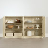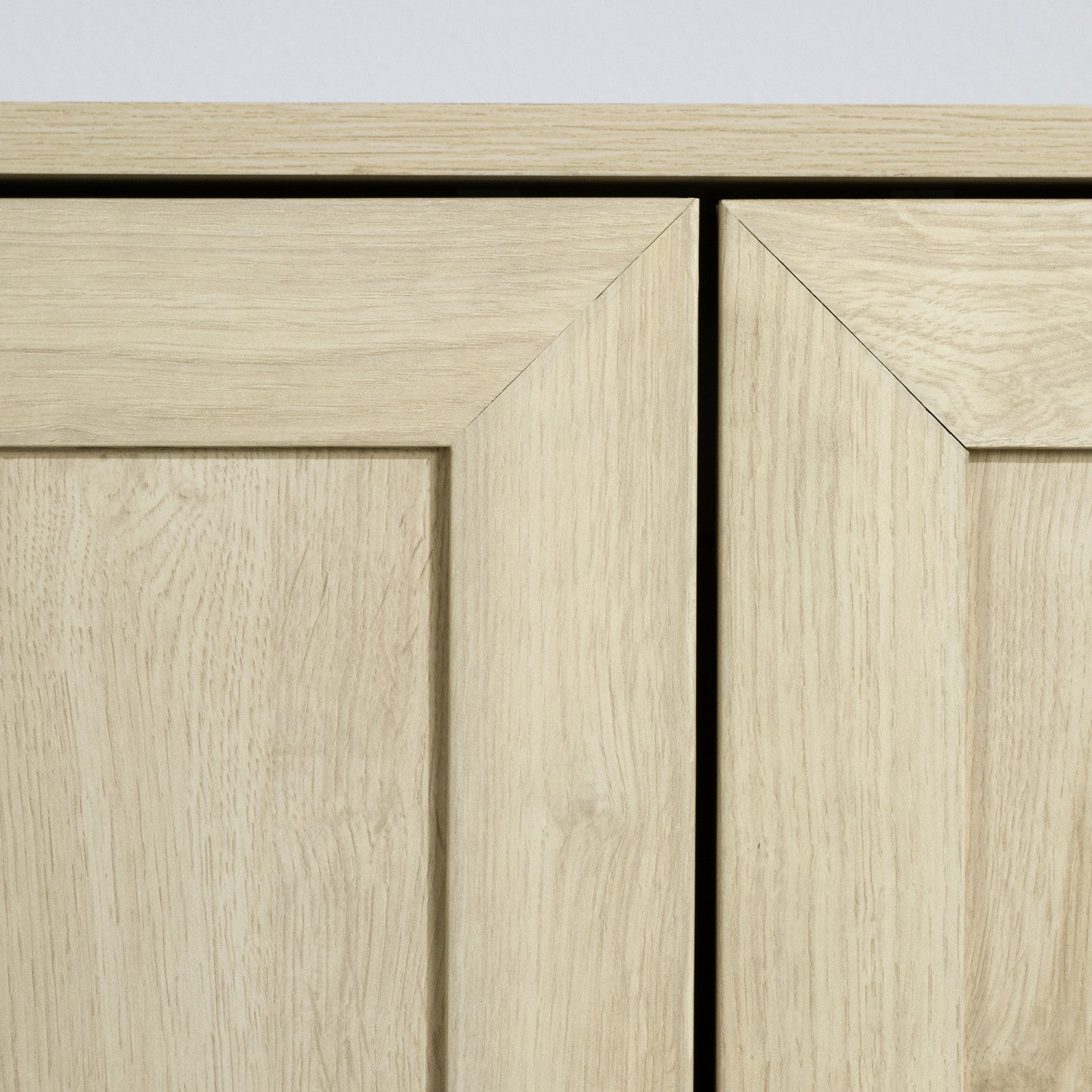 Ces buffets modernes sont de veritables bijoux en matiere de rangement. Parfaitement adaptes a vos besoins dans la salle a manger, ils permettent l’entreposage efficace d’objets de toutes tailles. Derriere les quatre portes, deposez ainsi accessoires de cuisine, vaisselle et petits electromenagers sur les tablettes ajustables. Une simple poussee suffit a ouvrir les portes.