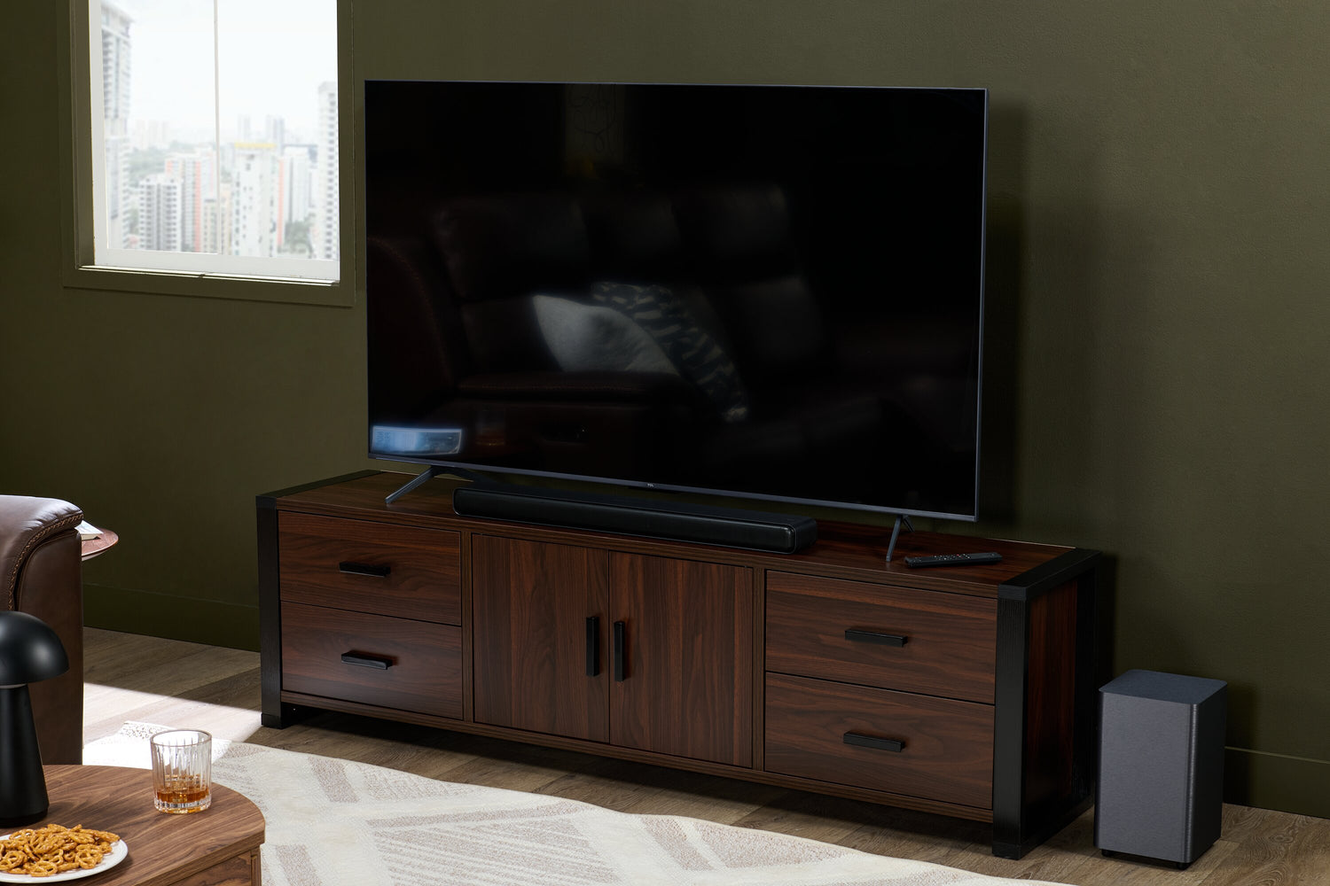 Meuble pour téléviseur Glendale de 60 po avec rangement et système de gestion des câbles pour téléviseurs jusqu’à 65 po - espresso