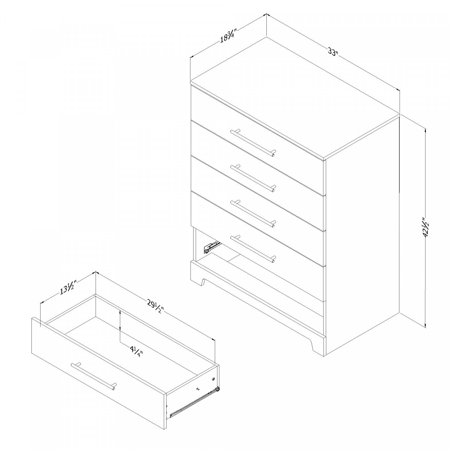 Largeur : 33 po (83,8 cm) Hauteur : 42,5 po (108,0 cm) Profondeur : 18,75 po (47,6 cm)