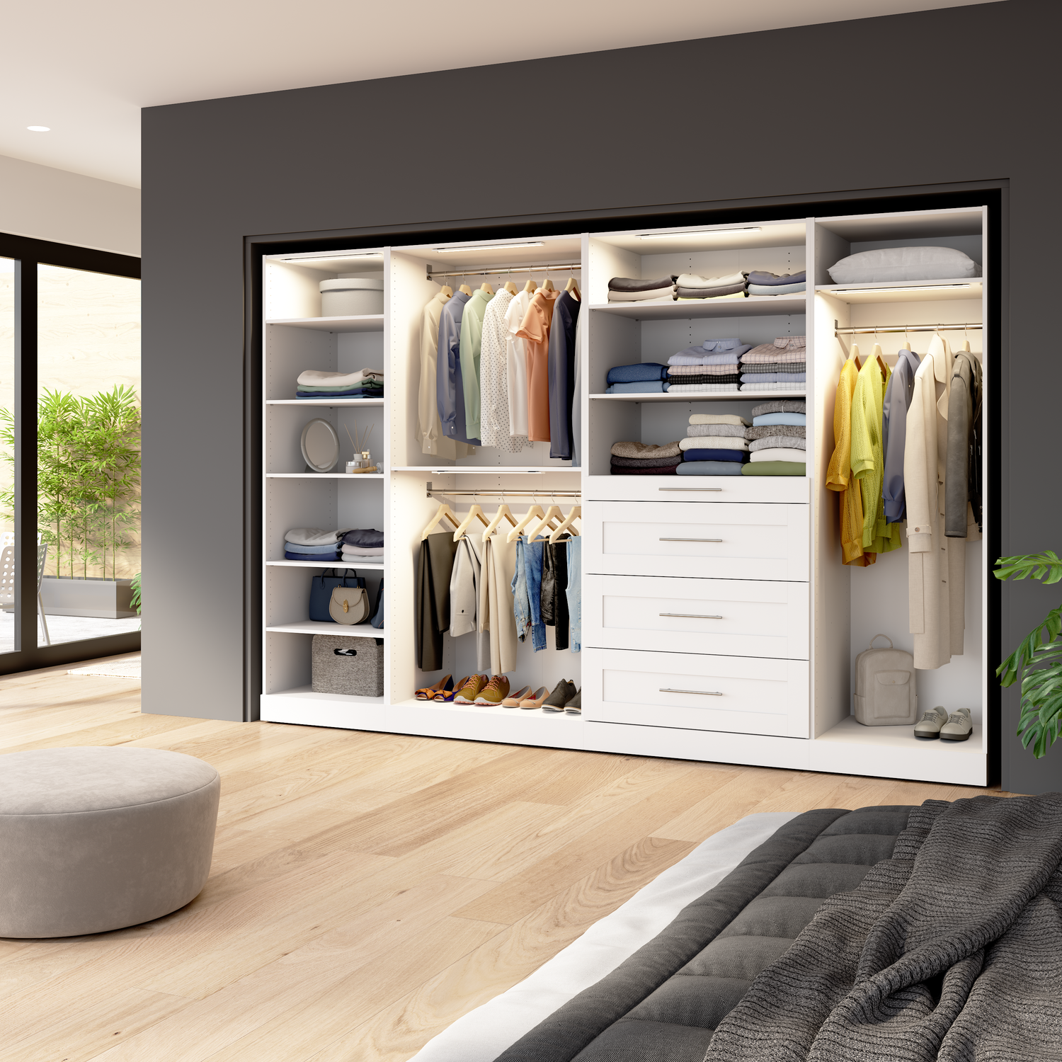 | Cet article inclut | Système de tour garde-robe de 25 po (L) x 25 po (P) avec tablettes, système de tour garde-robe de 36 po (L) x 25 po (P) avec tablettes et 4 tiroirs, système de tour garde-robe à espace pour suspendre de 25 po (L) x 25 po (P) avec tablette et système de tour garde-robe à 2 espaces pour suspendre de 36 po (L) x 25 po (P). |