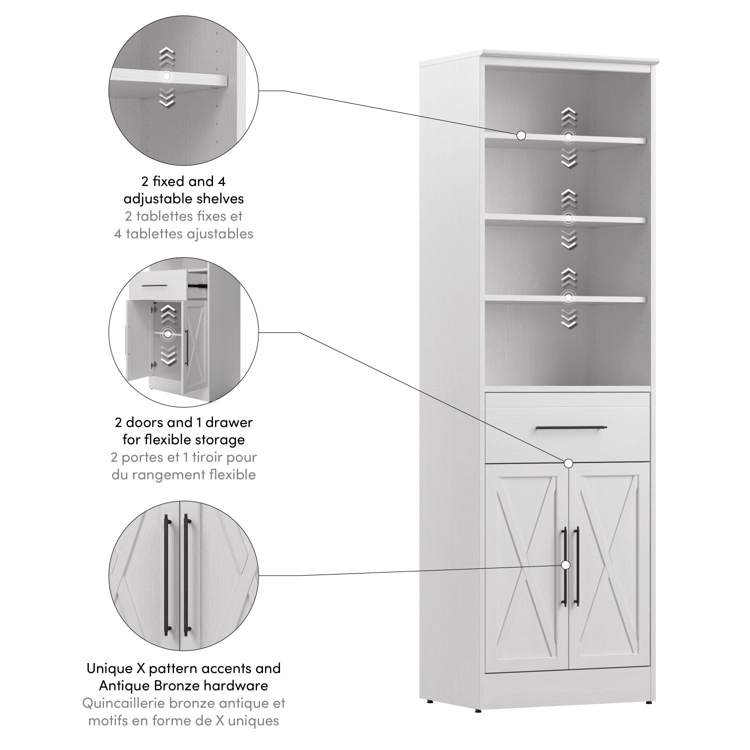 | Options de rangement | Étagère avec tiroir et portes |