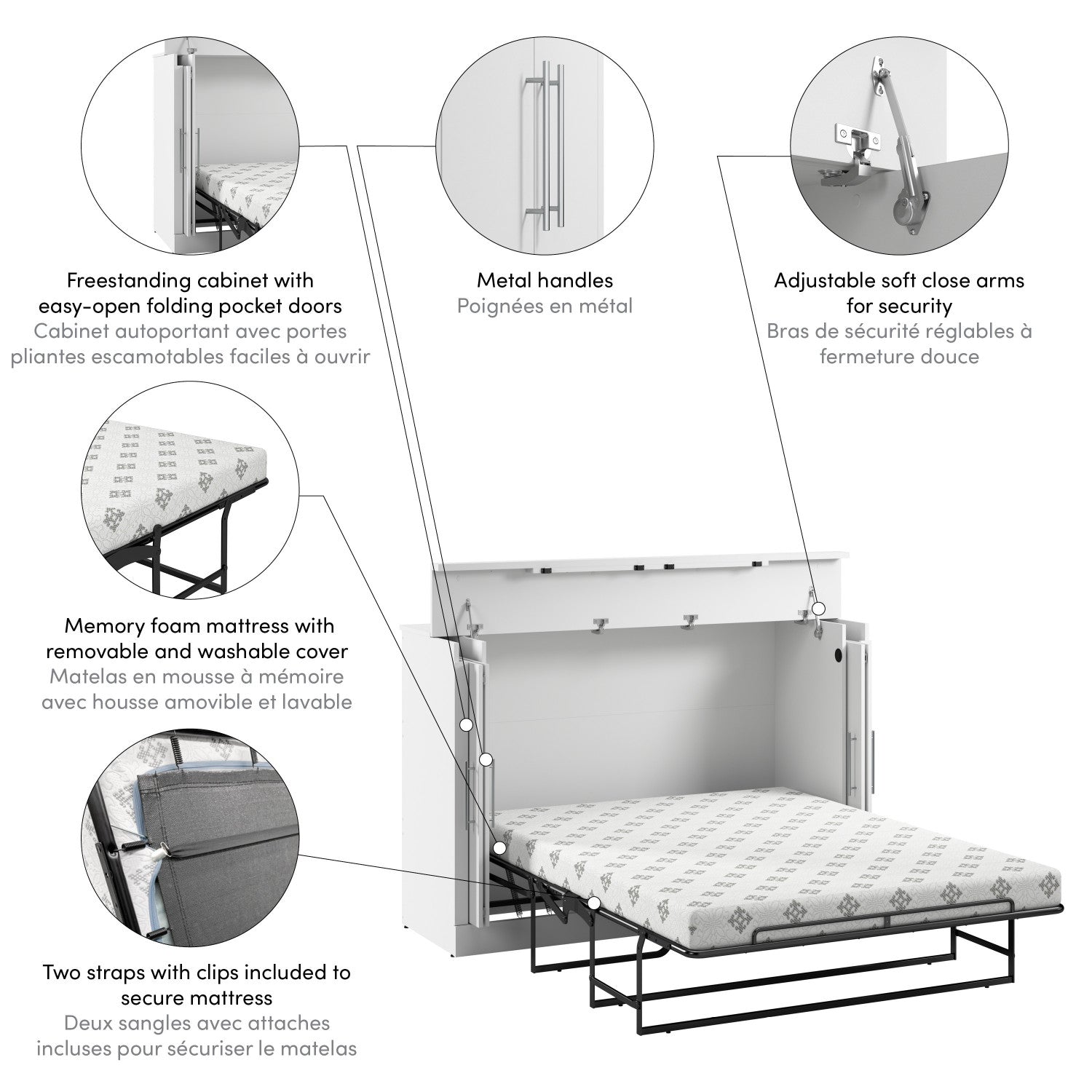 Garantie du fabricant | L’armoire-lit est couverte par une garantie du fabricant de 10 ans. Le mécanisme rétractable possède une garantie de 2 ans, et le matelas a une garantie de 1 an. |