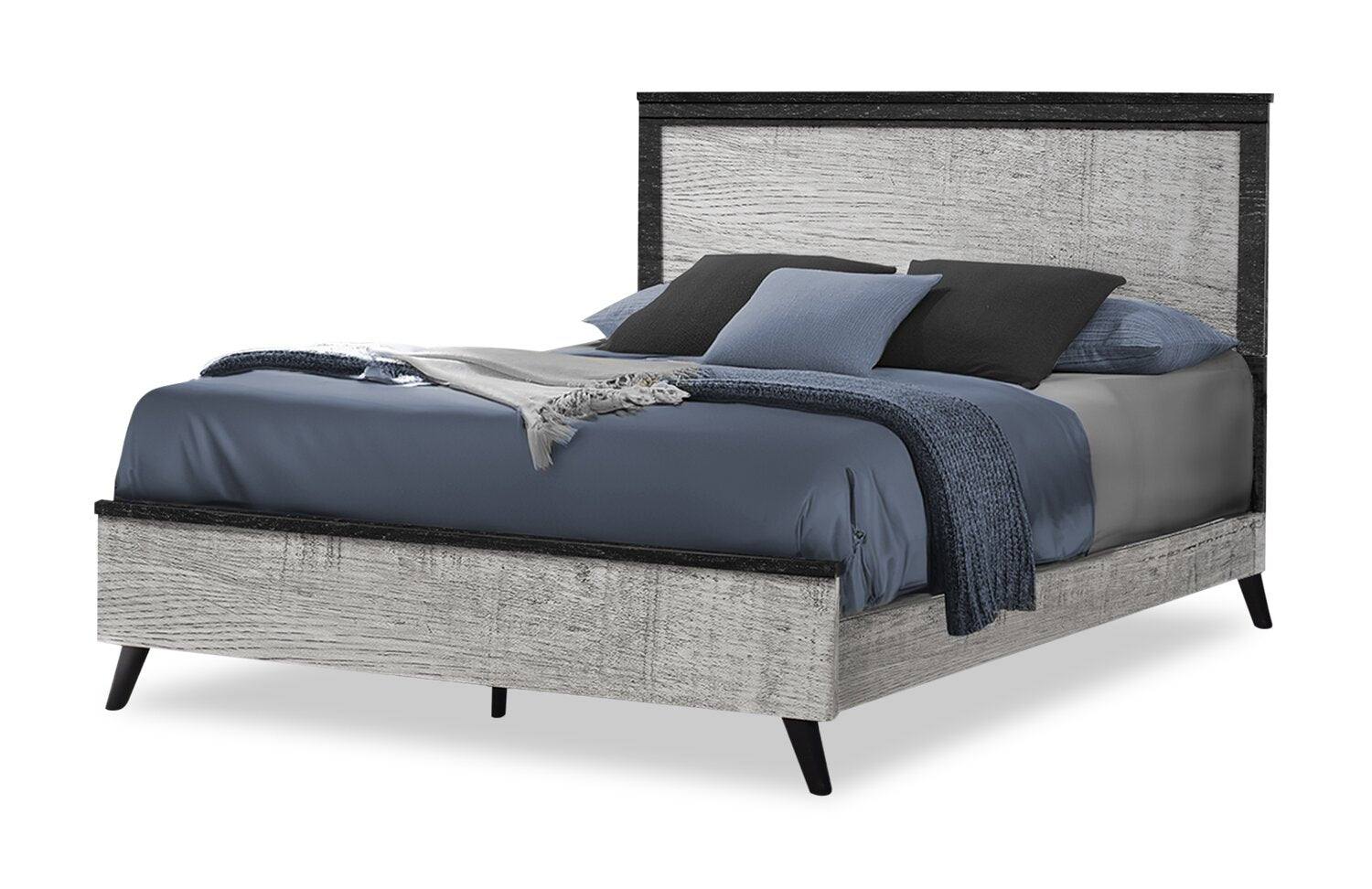 Lit à panneaux Blake avec tête de lit et cadre de lit, gris et noir - format grand lit