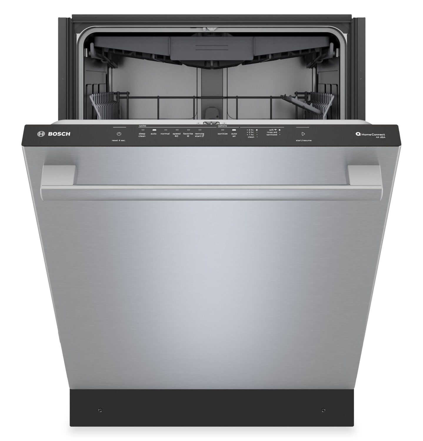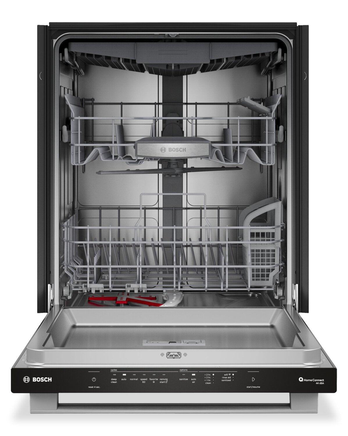 Nettoyage de zone : Option AutoAirMD : Fonctionnement silencieux à 44 dBA : Troisième panier standard : Application Home ConnectMD : Panier RackMaticMD : |