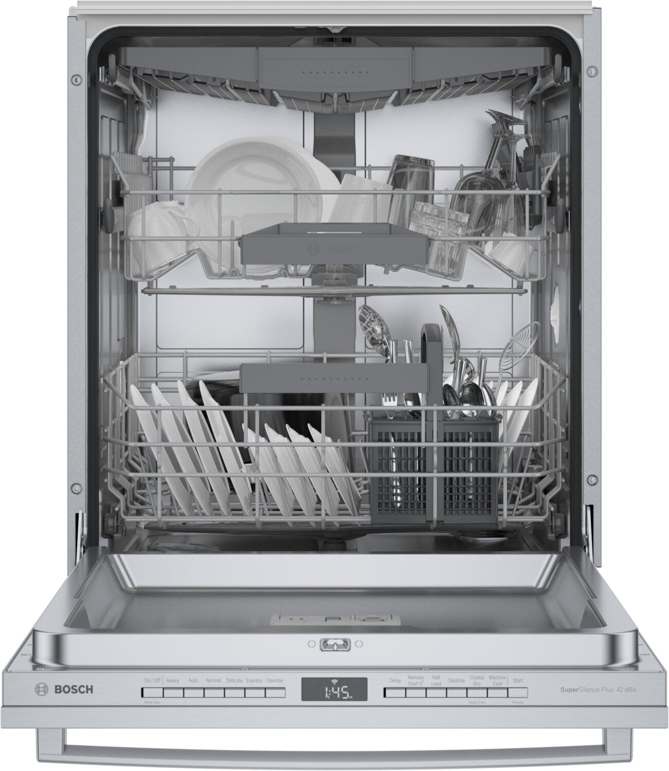 Technologie PrecisionWashMC de Bosch : Technologie de séchage CrystalDryMC : Fonctionnement silencieux : Troisième panier : Panier supérieur RackMaticMD : Compatibilité Wi-Fi avec Home ConnectMC : AquaStopMD Plus 24 heures sur 24 : |