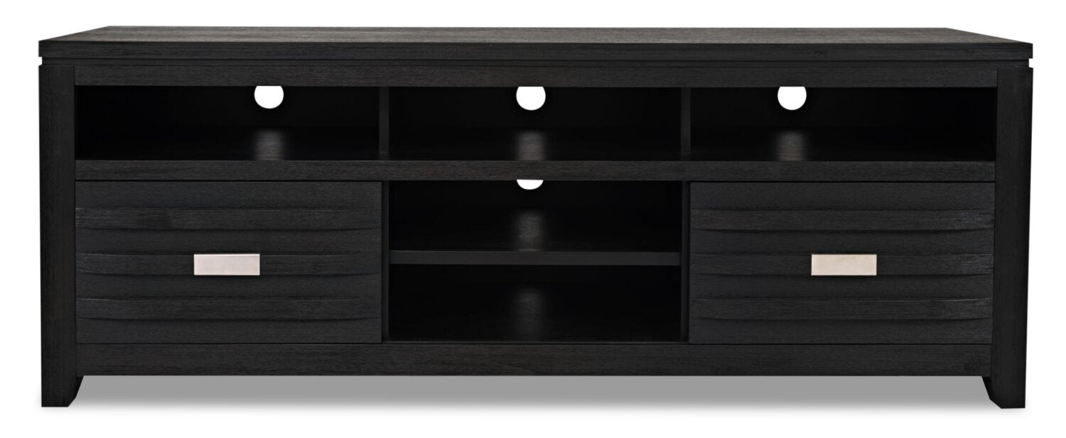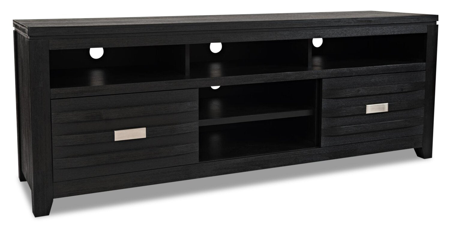 Meuble pour téléviseur moderne Adam de 78 po avec rangement et système de gestion des câbles pour téléviseurs jusqu’à 85 po - gris
