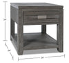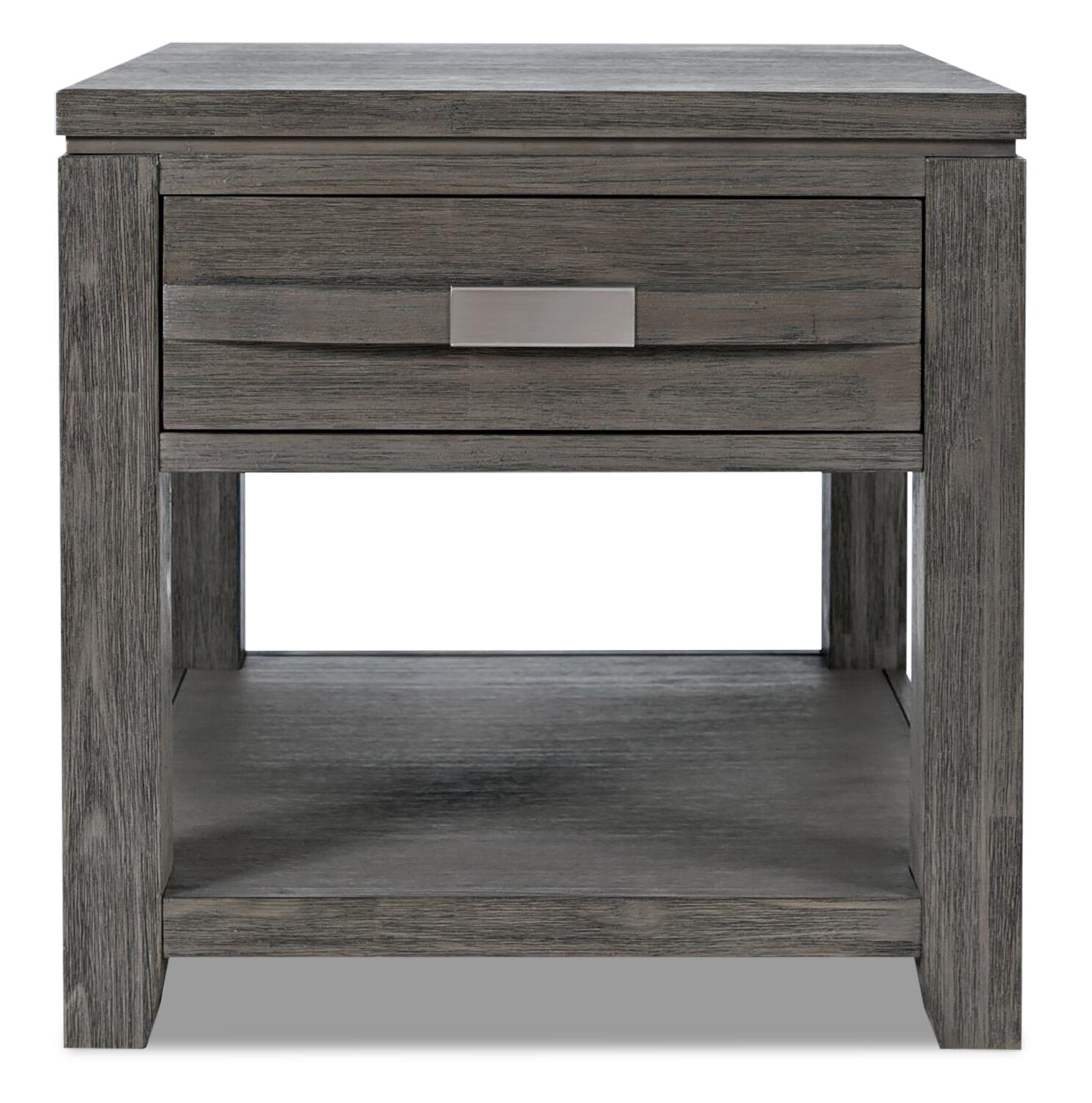 Détails décoratifs | Des arêtes gravées sur le devant des tiroirs et sous le dessus de la table confèrent une apparence superposée qui rehausse la construction en bois. L'apparence vieillie de bon goût ajoute une touche de style artisanal. |