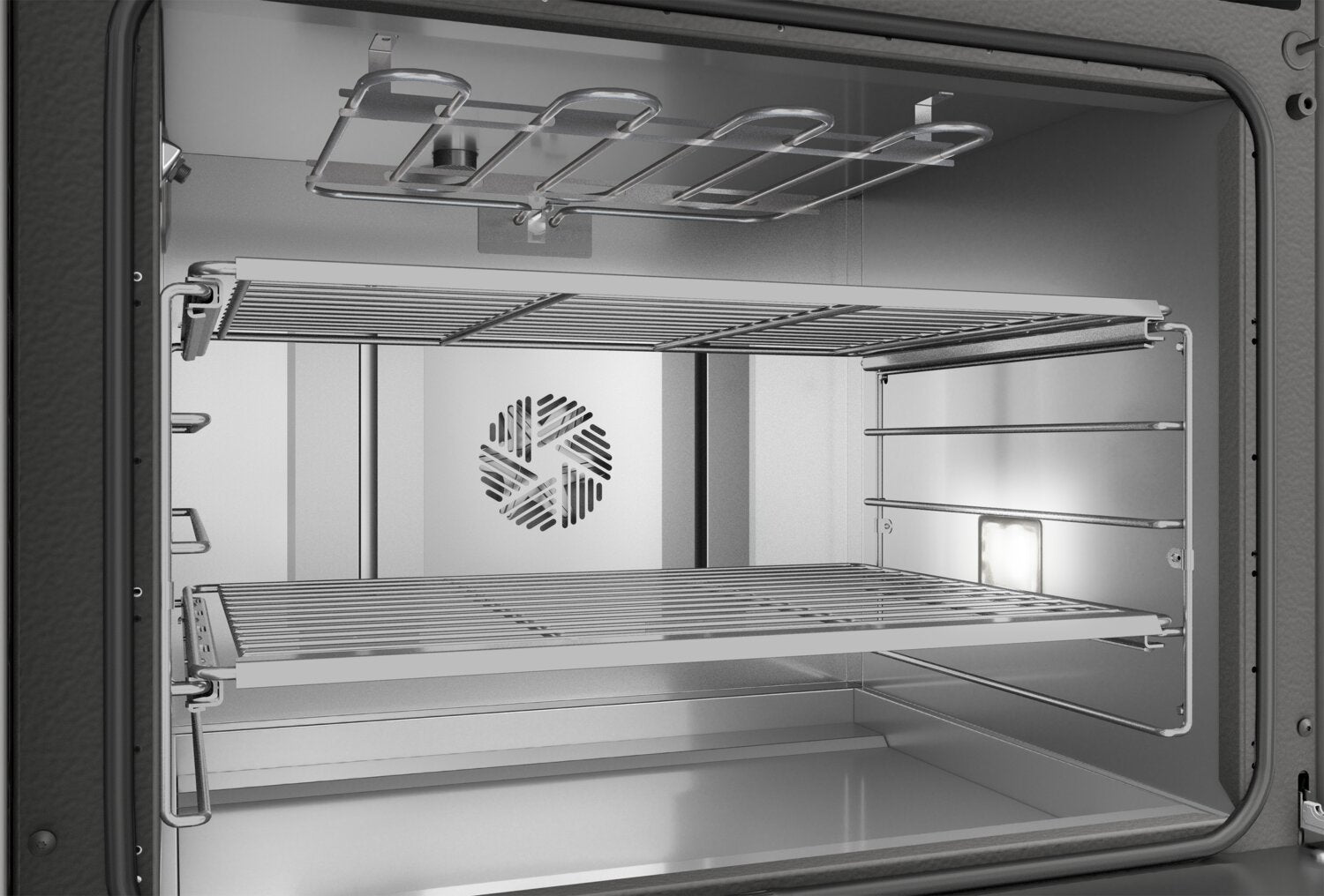 | Intérieur en acier inoxydable : Éclairage rehaussé : Système de grilles à coulissement fluide : Fini TEONMC exclusif : Cuisson dynamique : Tiroir-réchaud : |