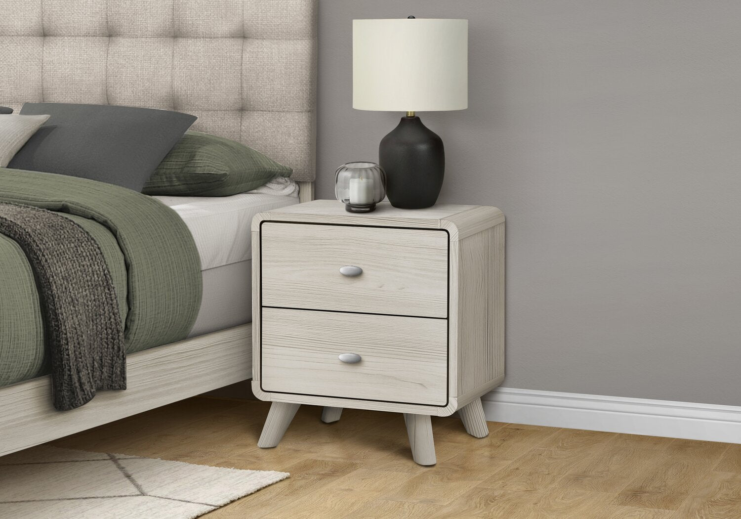 Table de nuit moderne du milieu du 20e siècle Cami de 17 po (L) x 24,8 po (H) à 2 tiroirs - chêne gris