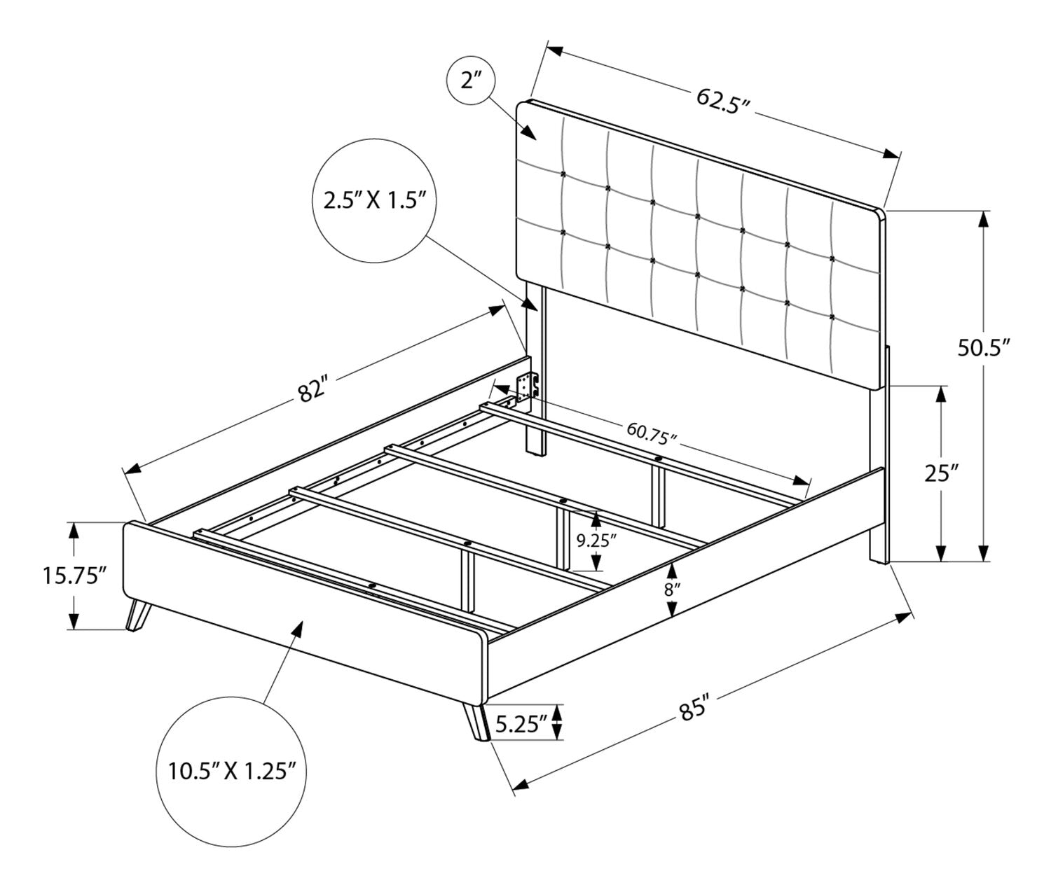 | Autres dimensions | Dimensions internes du cadre de lit (P x L, pouces) : 82 x 60,75 |