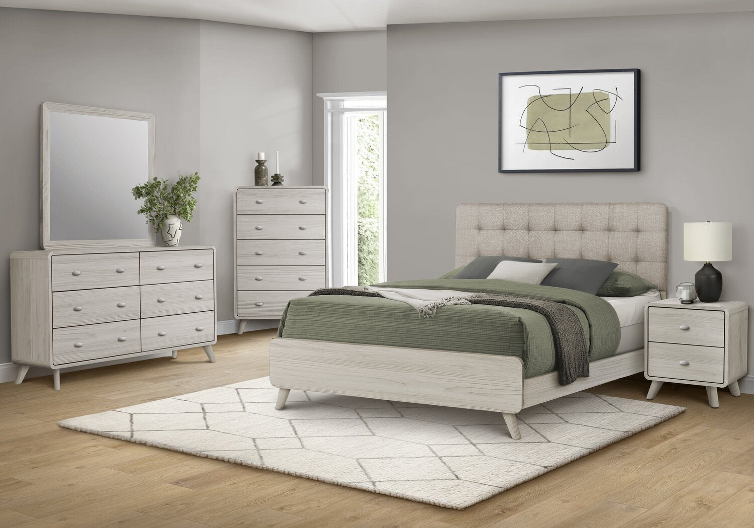 Lit à panneaux Arbor, bois de grève blanc - format grand lit