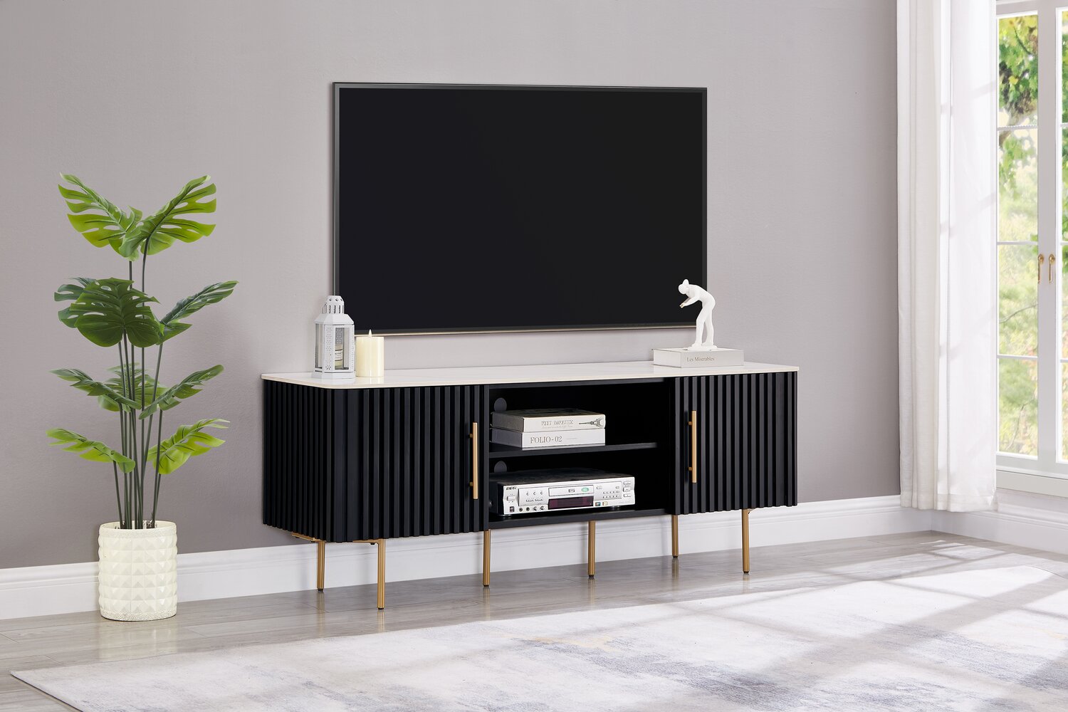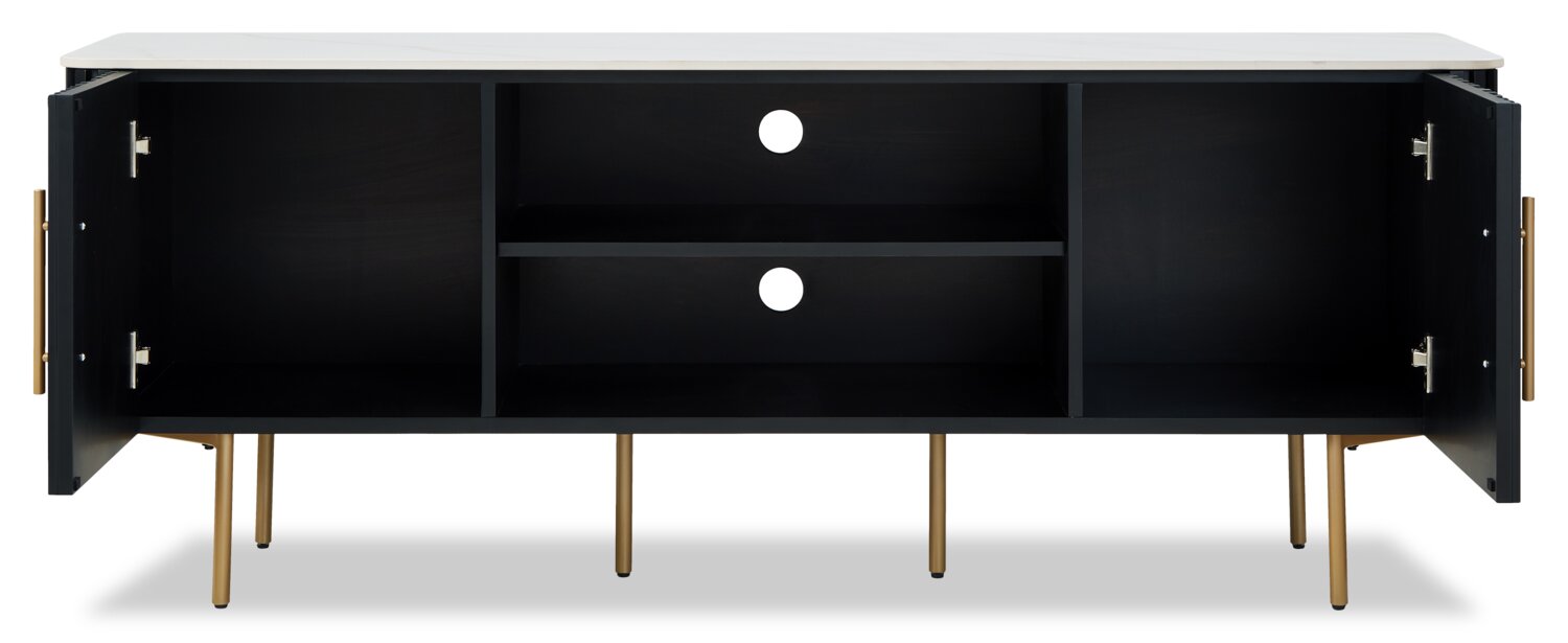 Meuble pour téléviseur moderne Adam de 68 po avec rangement et système de gestion des câbles pour téléviseurs jusqu’à 75 po - blanc