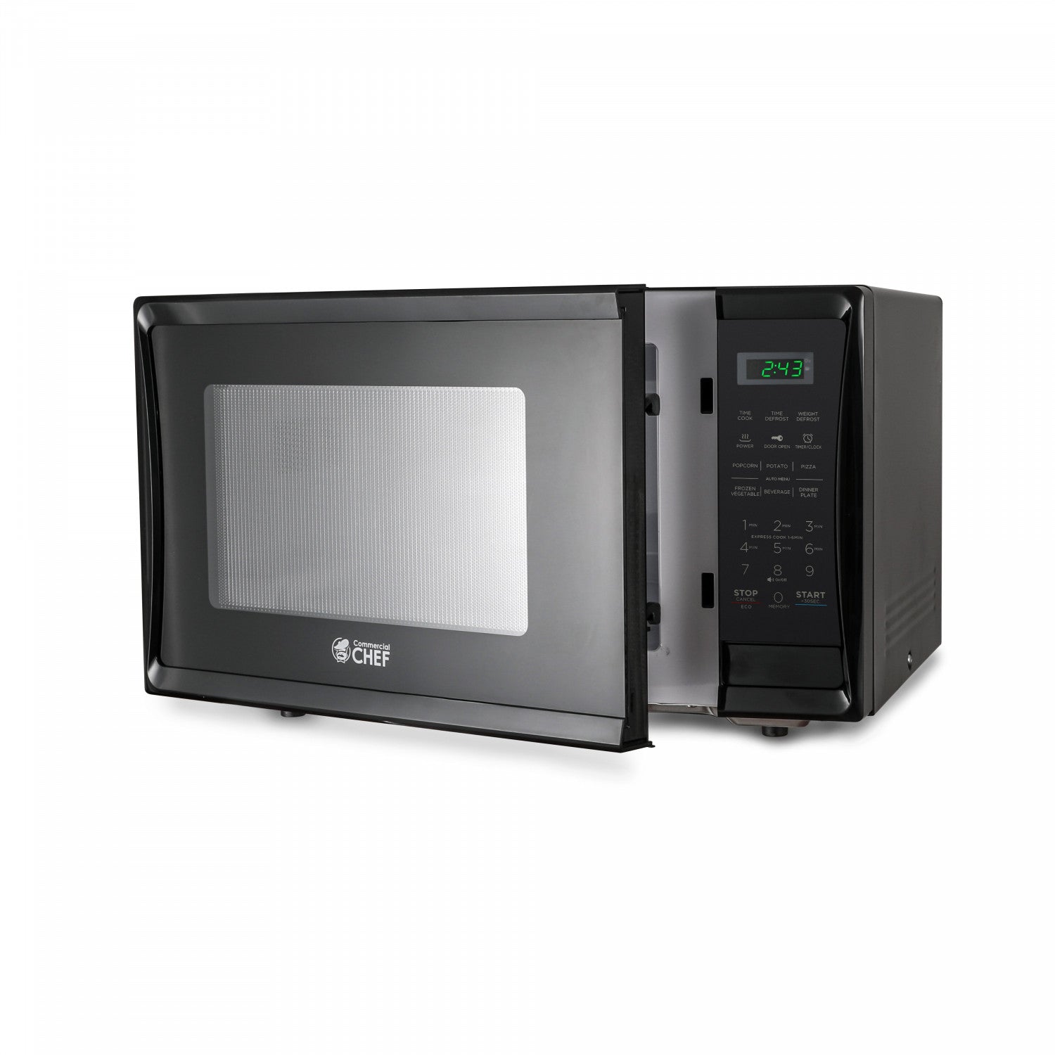 Rechauffez et rechauffez vos plats et boissons preferes grace a ce four a micro-ondes de comptoir PRORCIAL CHEF exceptionnel. Avec une capacite impressionnante de 31 litres (1,1 pi³), ce four a micro-ondes de 1 000 watts vous permet de preparer de delicieux repas rapidement. Notre fantastique micro-ondes noir (51,3 cm x 40 cm x 30,7 cm) trouvera facilement sa place sur le plan de travail de votre cuisine, que ce soit a la maison, en appartement, en camping-car, en residence etudiante, etc. Avec un poids plume de seulement 14 kg, ce micro-ondes portable vous accompagnera partout et vous permettra d'avoir vos plats et boissons chauds a portee de main. Ce petit four a micro-ondes offre des performances impressionnantes grace a ses fonctions de cuisson, de decongelation (par temps et par poids) et de puissance. Parmi les menus preregles, vous trouverez du pop-corn, des pommes de terre, des pizzas, des legumes surgeles, des boissons et des assiettes. L'ecran numerique comprend egalement une horloge et un minuteur. Notre petit micro-ondes de comptoir de 31 litres chauffe vos aliments en 30 secondes seulement, et bien plus encore ! D'une puissance de 1000 watts, il est dote de fonctionnalites supplementaires exceptionnelles : un bouton-poussoir integre a la porte, un plateau tournant performant garantissant une cuisson homogene, une securite enfant, un eclairage LED jaune et vert, et un design elegant en plastique noir. Ce micro-ondes de comptoir PRORCIAL CHEF de 1000 watts a tout pour plaire : une puissance de chauffe fiable et performante. Ses fonctionnalites et reglages impressionnants vous permettront de chauffer et de rechauffer vos plats tout au long de votre journee chargee !