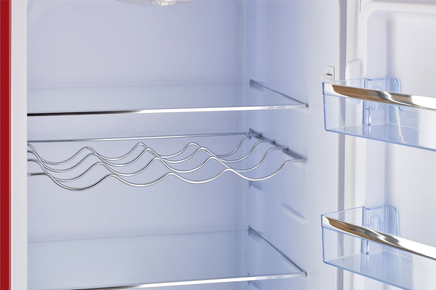 Tablettes dans le réfrigérateur | Support à vin réglable pour 4 bouteilles, 4 tablettes en verre réglables et 3 tablettes de portes réglables pleine largeur |