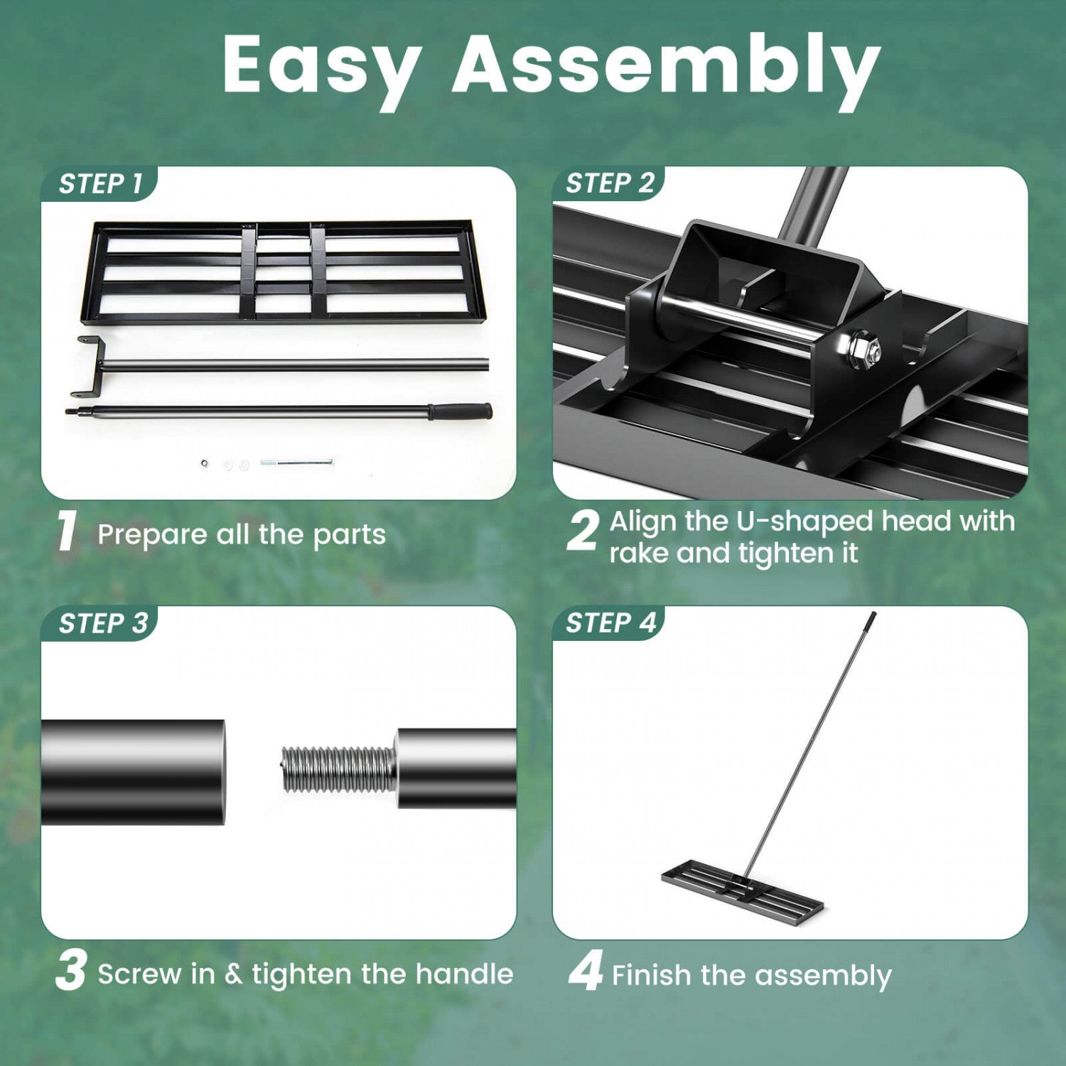 Costway Pelouse Nivellage Rake 36" X 10" Lourd Outil De Pelouse De Niveau Pour Jardin Arriere-cour/pelouse Noir