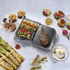 Cinq options de cuisson Conception élégante et contemporaine Affichage ACL Les plaques amovibles, réversibles et antiadhésives vont au lave-vaisselle Boîtier en acier inoxydable brossé Couvercle flottant |