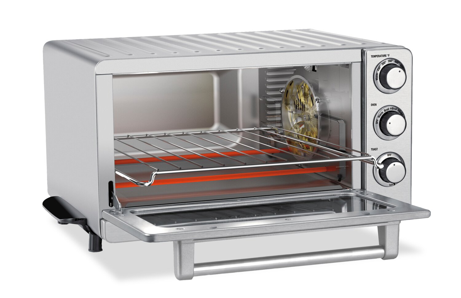 Performance à grande puissance de 1 800 W : Capacité spacieuse de 0,6 pi3 : Commodité quotidienne intégrée : Intérieur en acier inoxydable : Plateau ramasse-miettes coulissant : Hublot en verre : |