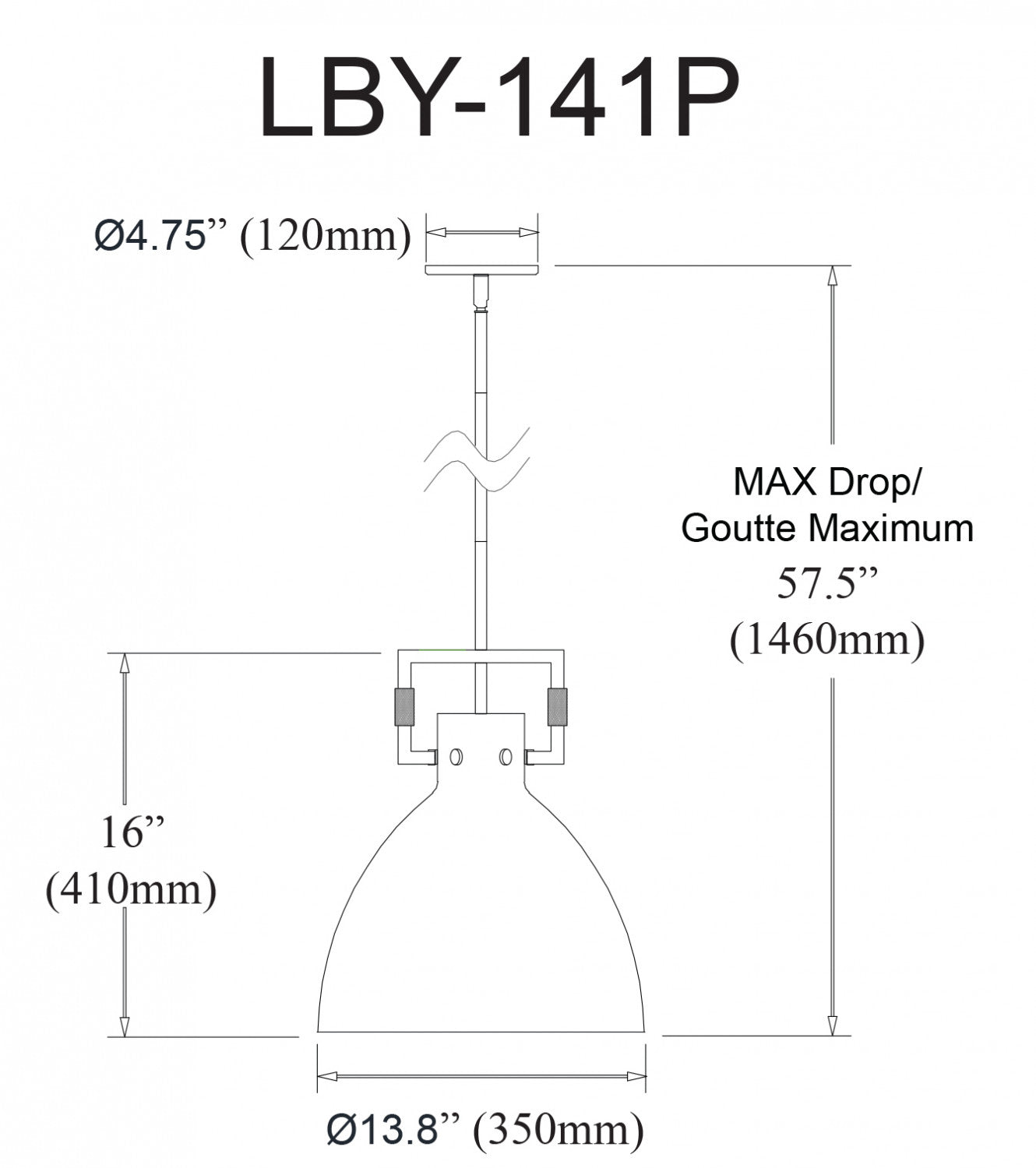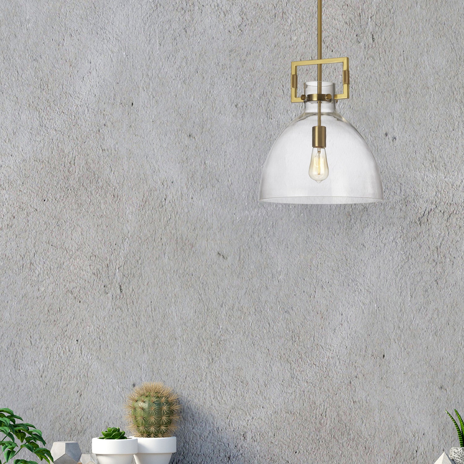 Luminaire suspendu Liberty de Dainolite avec fini laiton vieilli et 1 ampoule