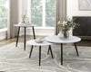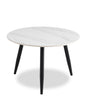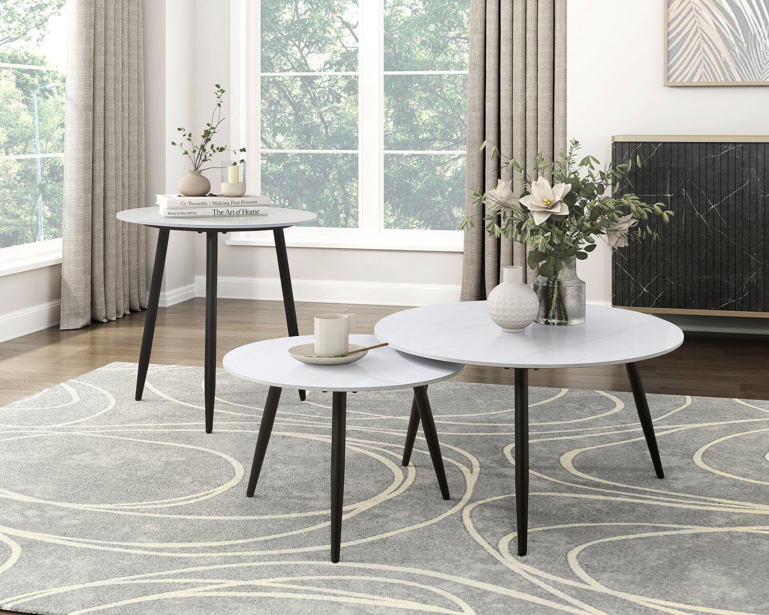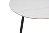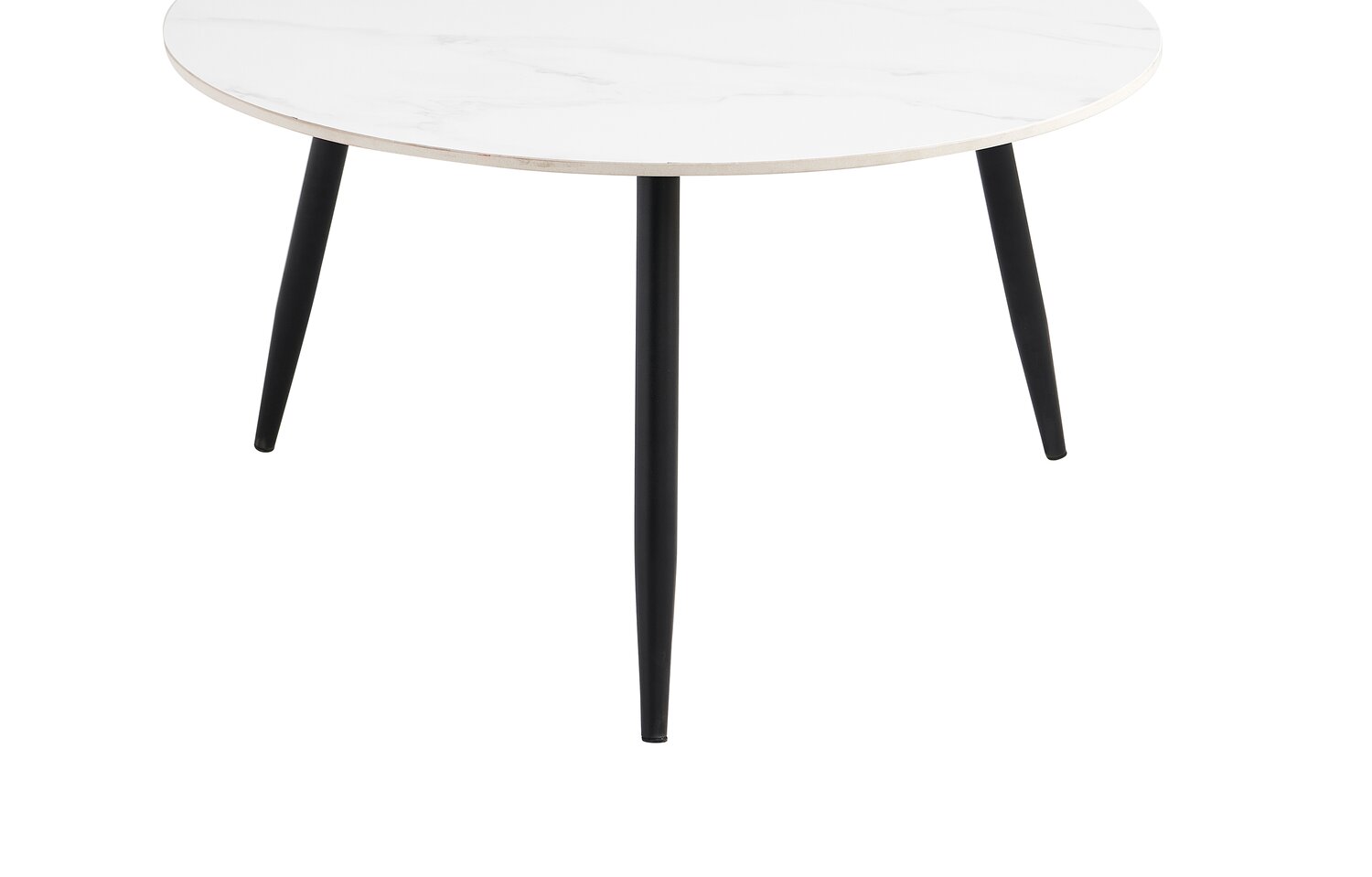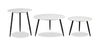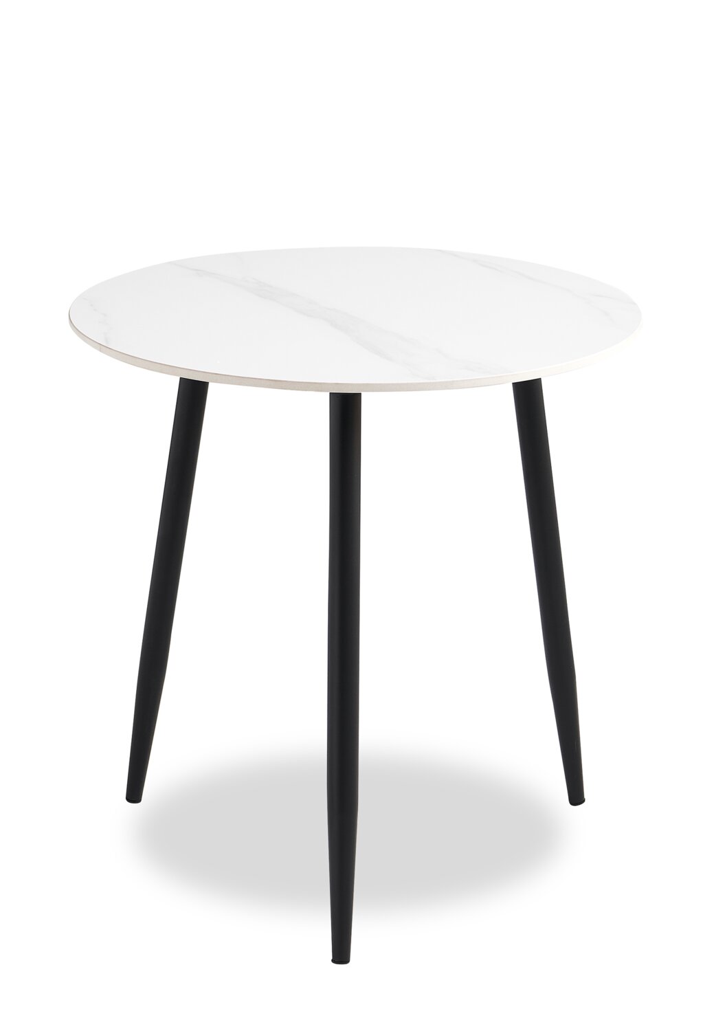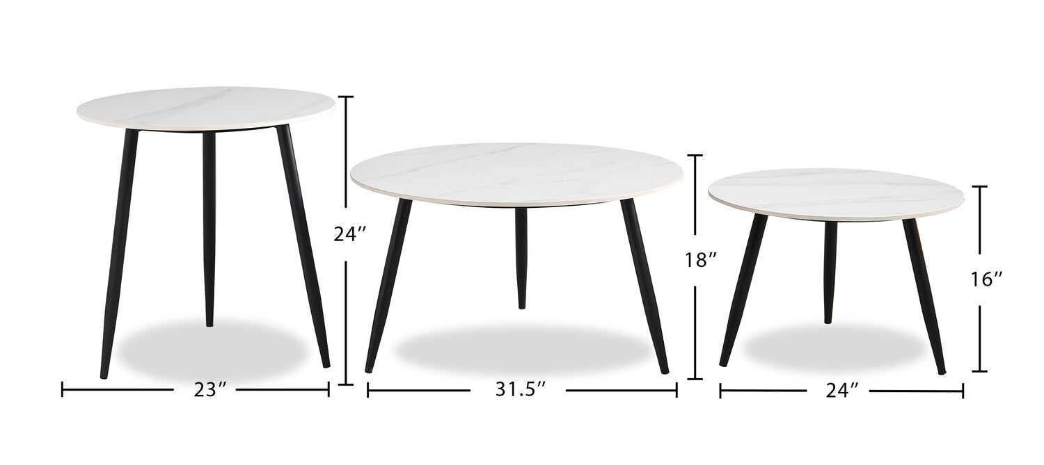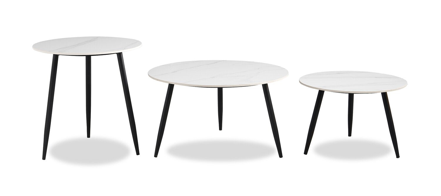 | Détails décoratifs | Le dessus en pierre frittée blanche des tables arbore des veines grises. |