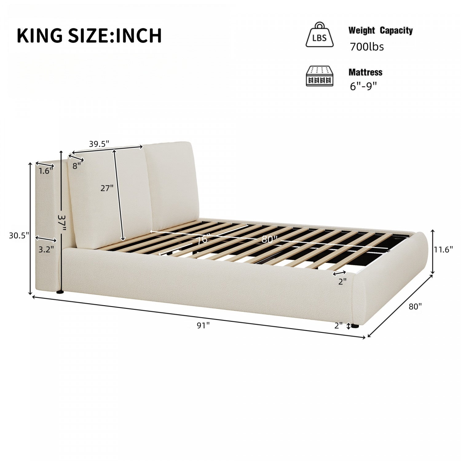 | Autres dimensions | Matelas recommandé : 15 à 23 cm |