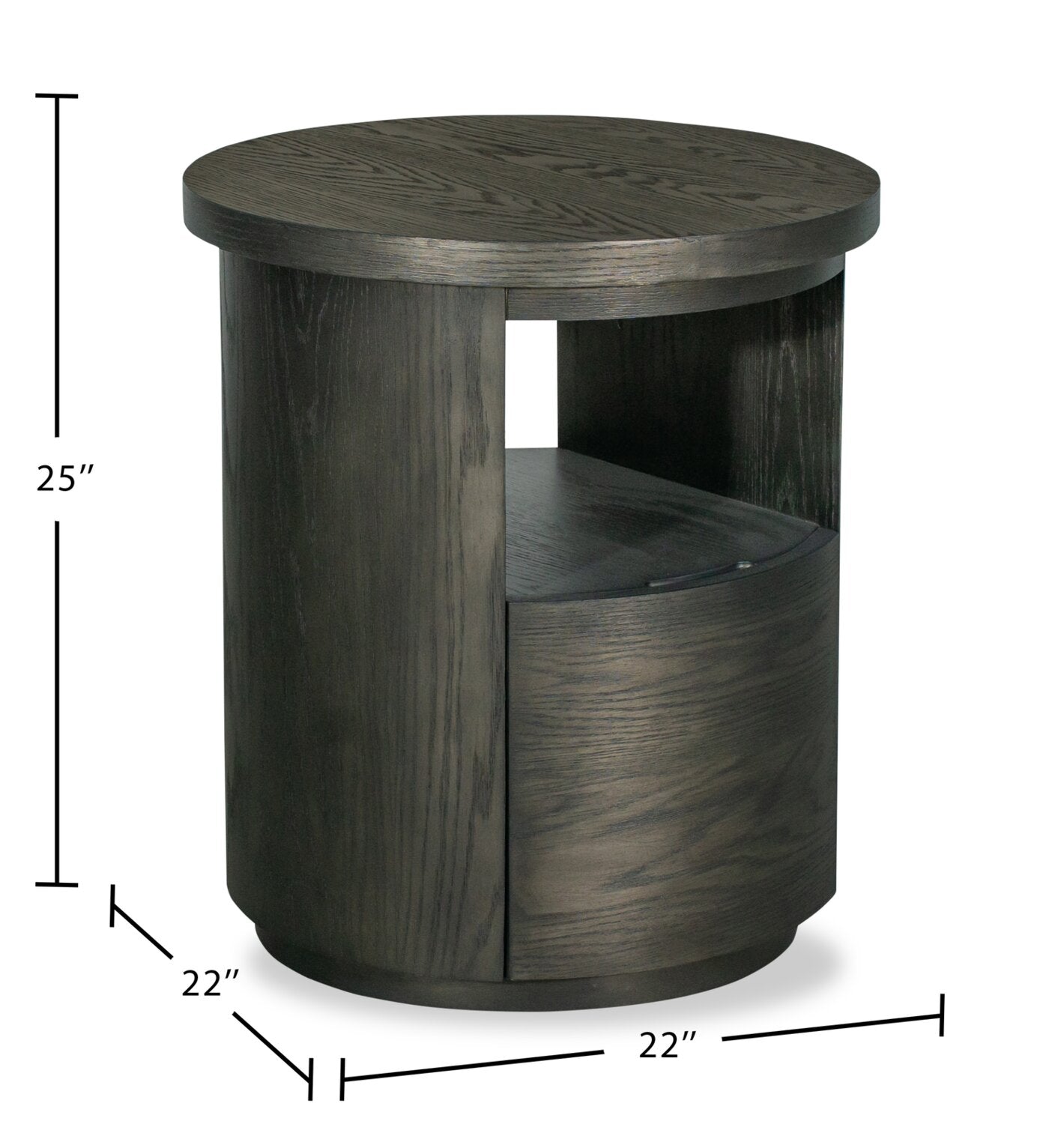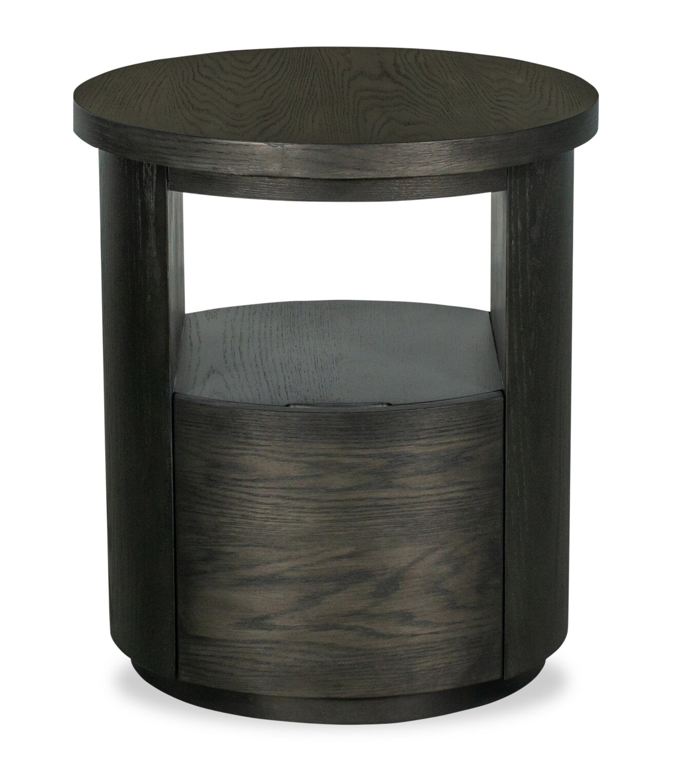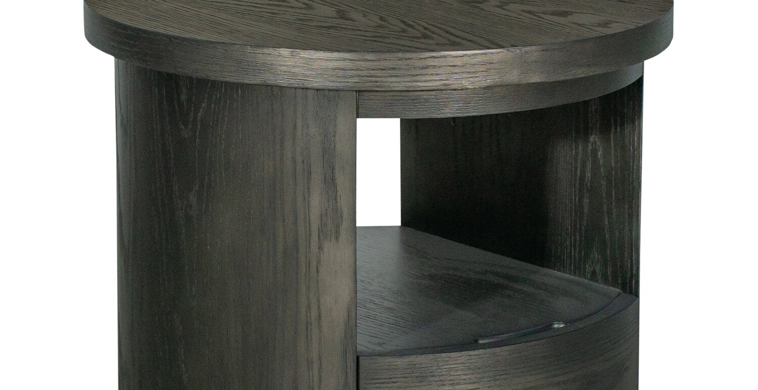 Table de bout moderne ronde Eldon de 22 po en bois massif avec rangement - grain de café