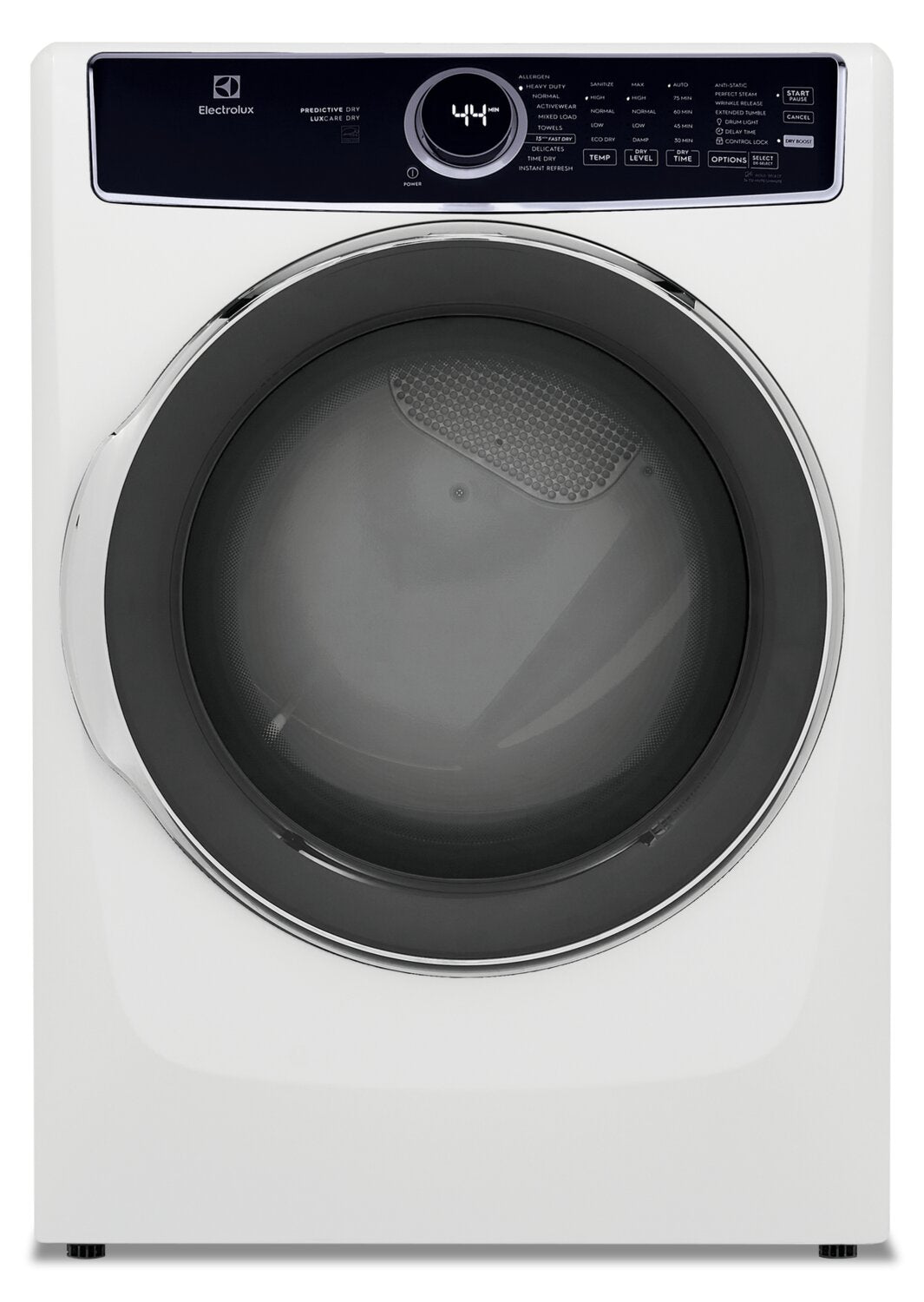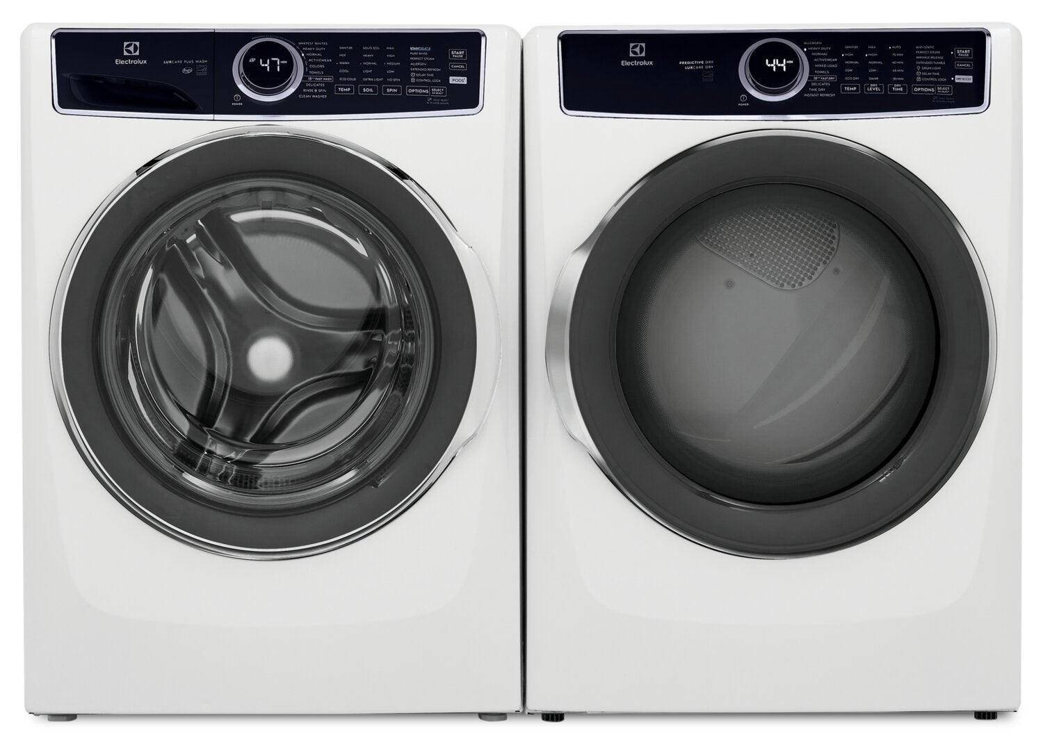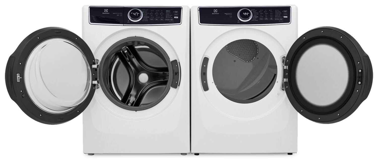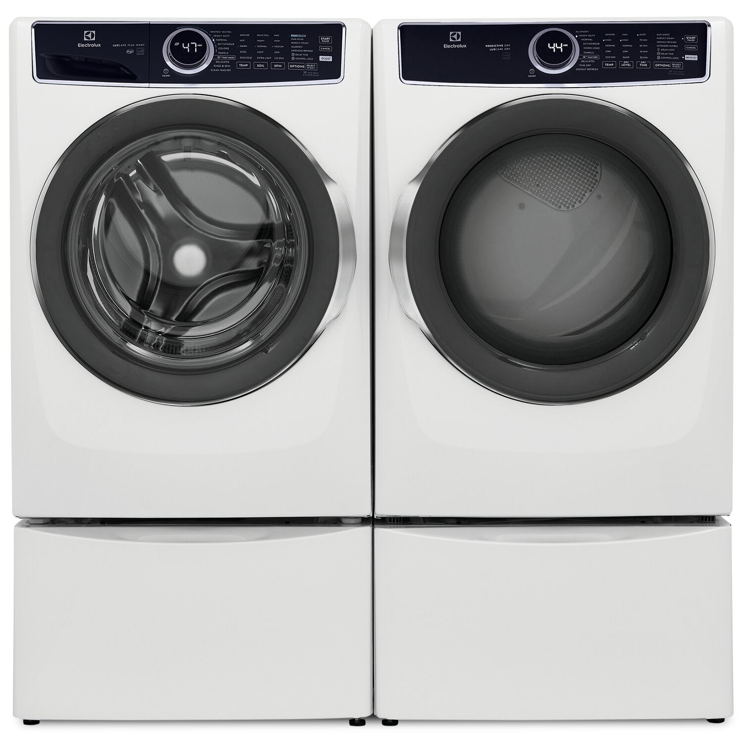 Vendu séparément | Sécheuse électrique (ELFE753CAW), sécheuse à gaz (ELFG7537AW), piédestal de rangement (EPWD257UIW), ensemble de superposition optionnelle (STACKIT7X) |