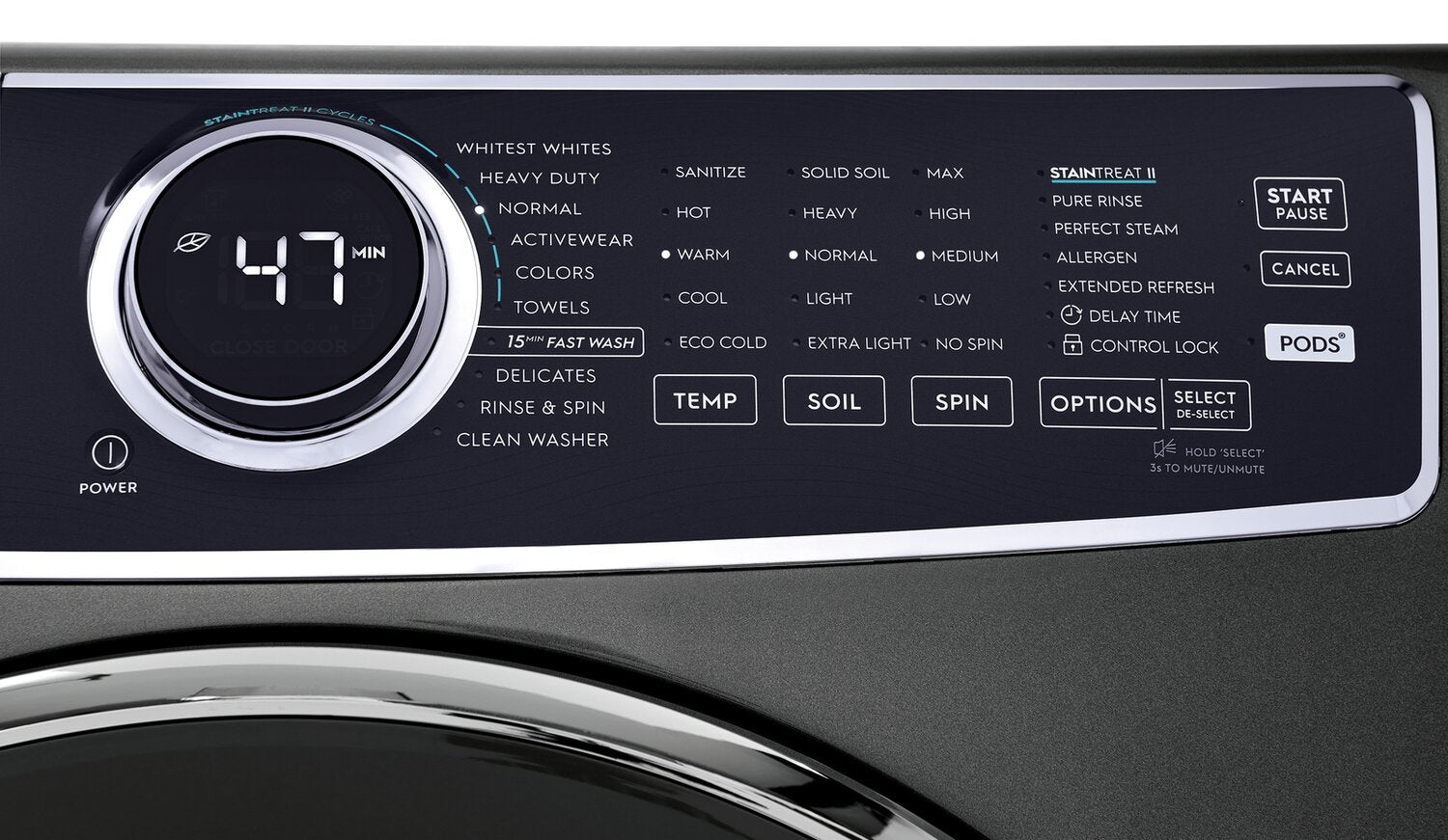 Options de nettoyage | Démarrage différé (1 à 12 heures), rafraîchissement prolongé, rinçage supplémentaire, Perfect Steam, Pure RinseMC, StainTreatMC II, vapeur |