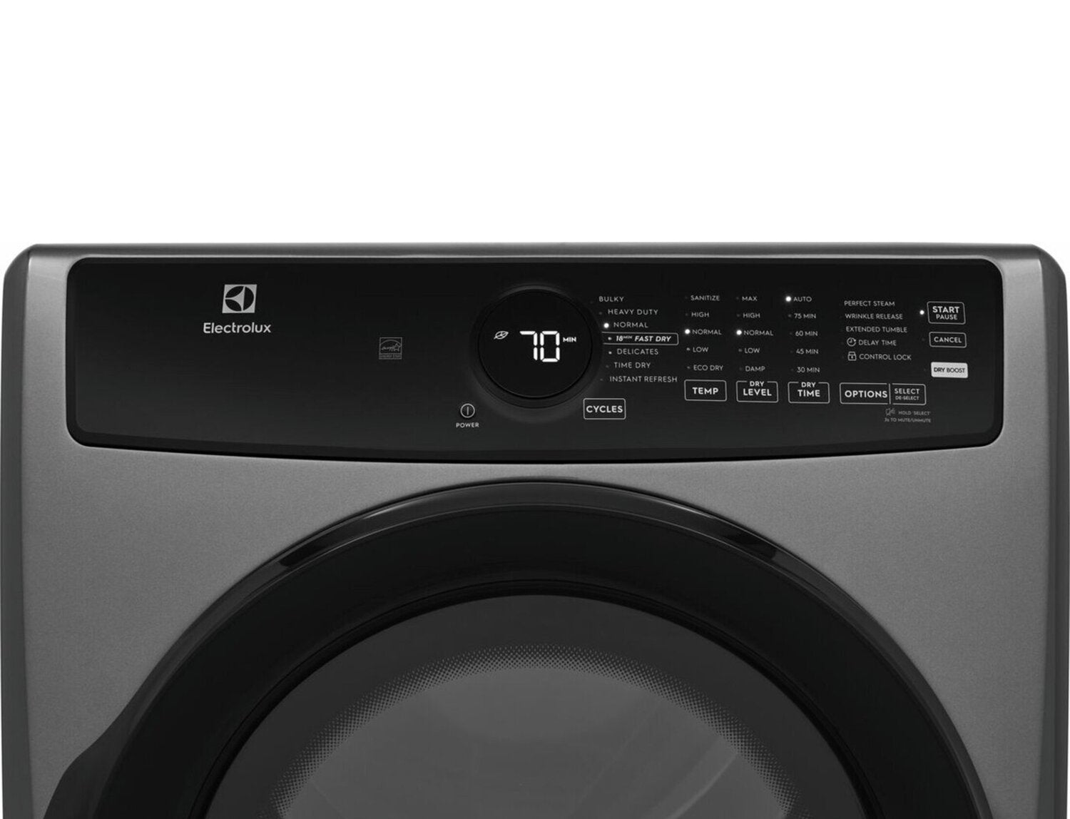 | Options de séchage | Démarrage différé (1 à 12 heures), séchage ajouté, culbutage prolongé, Perfect SteamMC, élimination des plis |