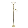 Illuminez votre bureau à la maison, votre entrée ou votre salle de séjour au moyen de cette lampe à pied mère et fille élégante et abordable à 2 ampoules. Elle possède un magnifique fini doré métallique et des abat-jours marbrés champagne avec un verre taillé en spirale pour compléter l’apparence intemporelle.