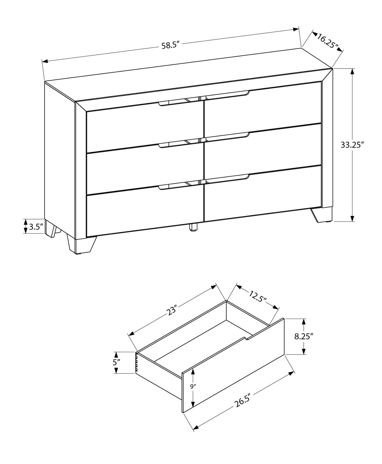 Largeur : 58,5 po (148,6 cm) Hauteur : 33,25 po (84,5 cm) Profondeur : 16,25 po (41,3 cm)