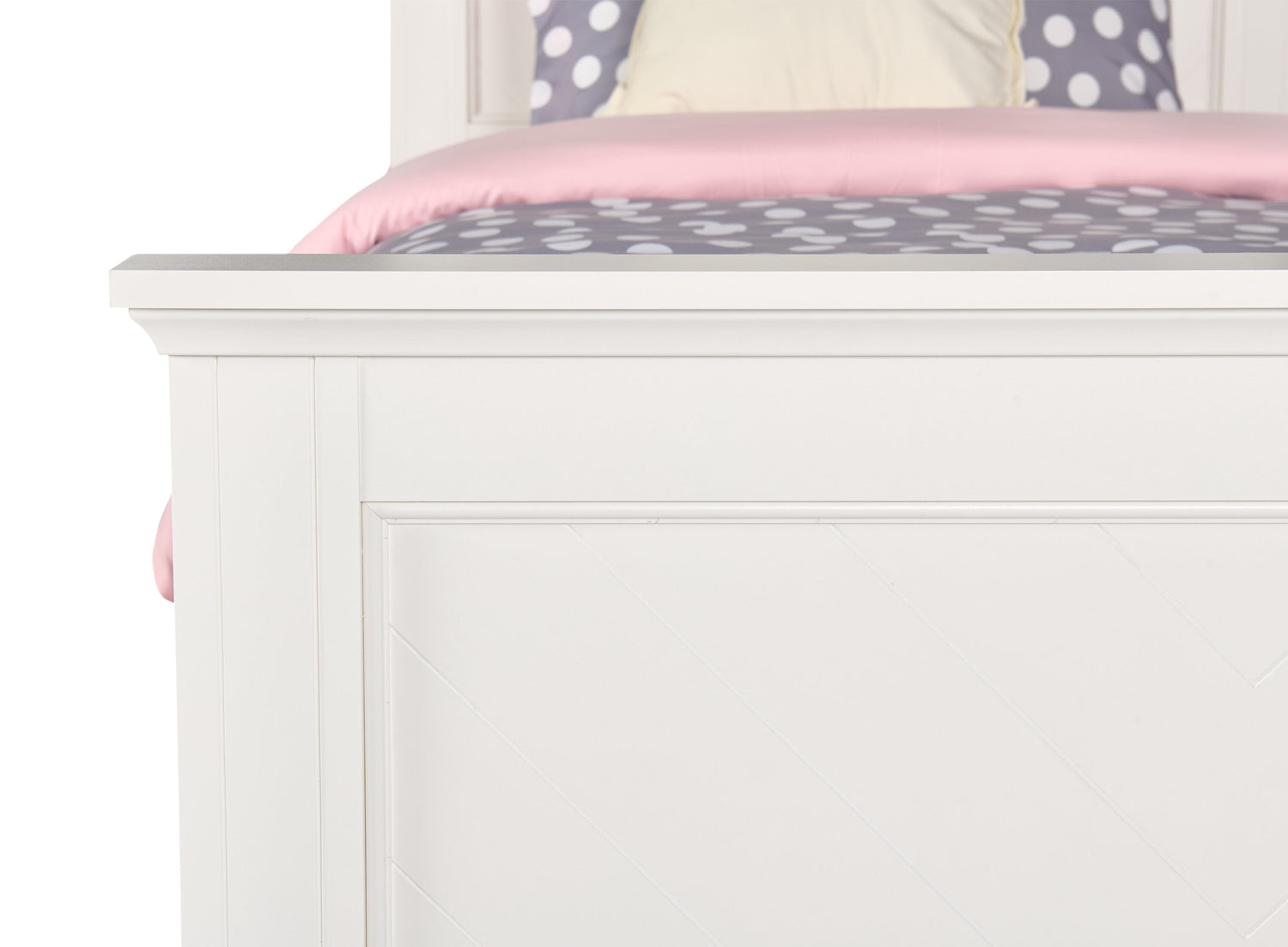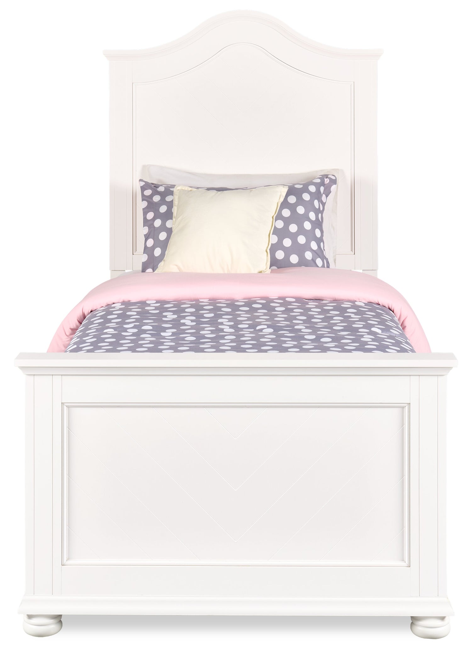 Vendu séparément | La commode, la commode verticale, la table de nuit et le miroir Ella assortis. |