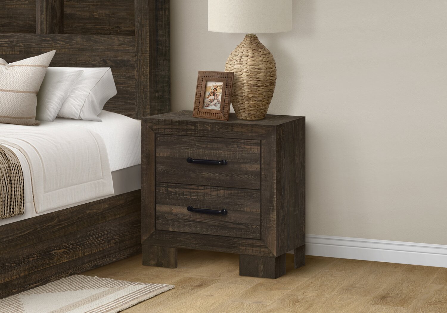Table de nuit Ethan de 22 po (L) x 23 po (H) à 2 tiroirs - brun rustique