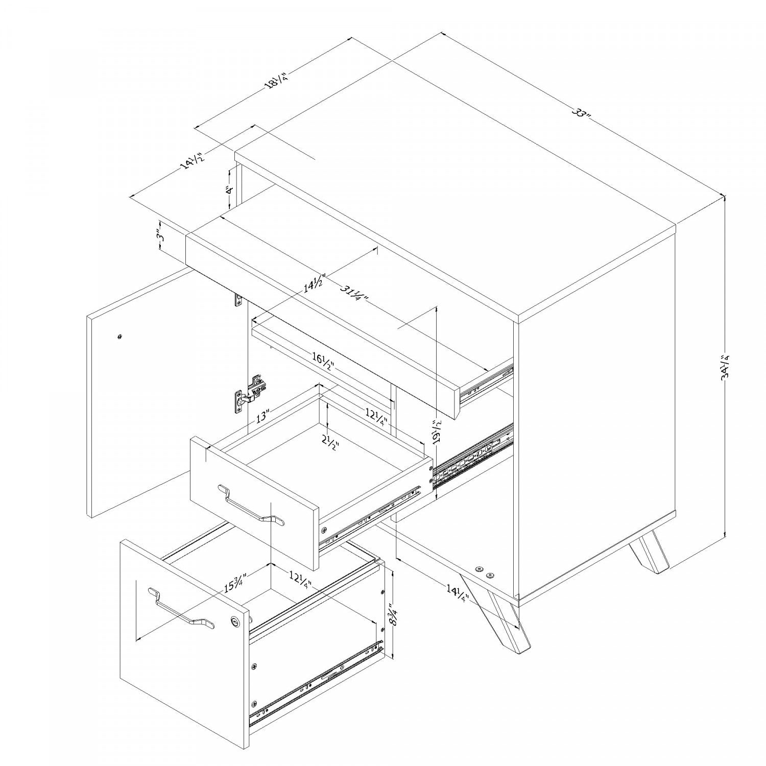 Largeur : 33 po (83,8 cm) Profondeur : 18,25 po (46,4 cm)