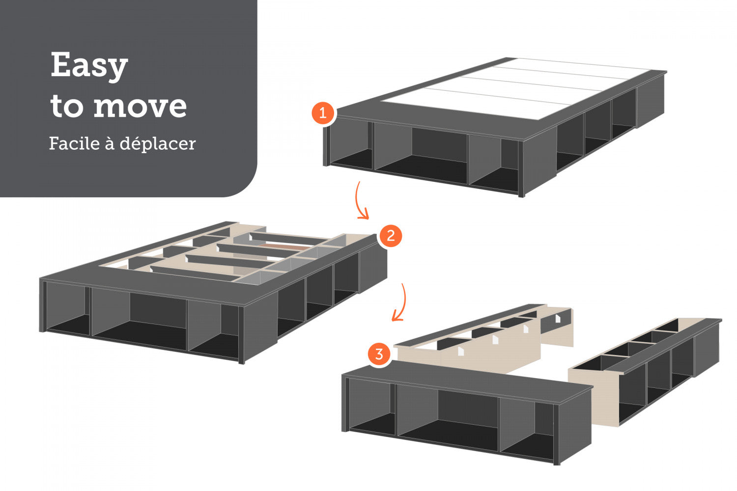 Largeur : 56 po (142,2 cm) Hauteur : 13,5 po (34,3 cm) Profondeur : 76,75 po (194,9 cm)