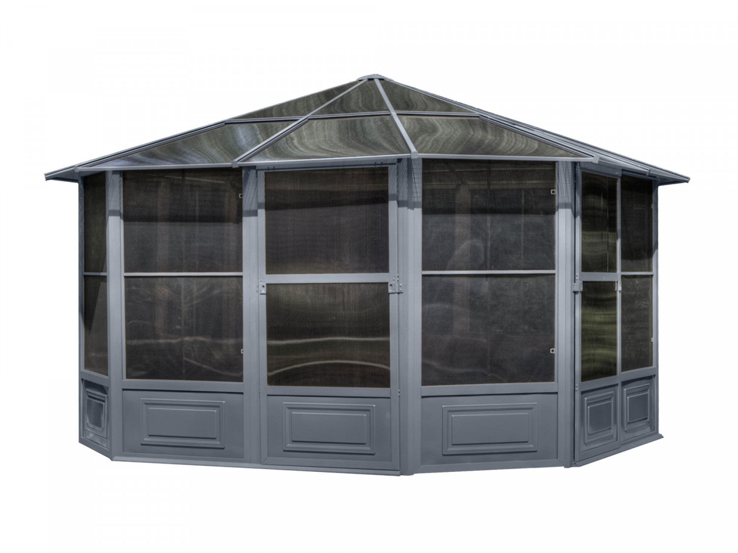 | Key Features | Resiste a la plupart de conditions meteorologiques Structure en aluminium thermolaque, toit en polycarbonate renforce avec une protection UV Les poignees de porte peuvent etre installees ou vous le desirez et vous permet de decider si la porte s’ouvre a droite ou a gauche Les panneaux de ventilation peuvent glisser en cinq positions pour permettre une circulation d’air maximale Tous les trous pour les vis comprennent des bouchons. Les deux extremites des rails de portes sont fermees pour empecher les insectes d’y entrer Si la moustiquaire se dechire, elle est facilement amovible et remplacable Portes en polycarbonate teinte Deux portes coulissantes que vous pouvez mettre dans la position de votre choix |