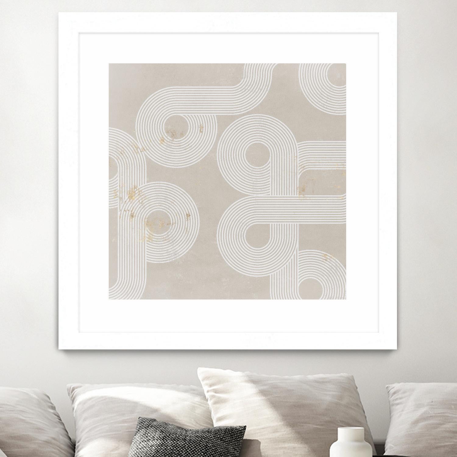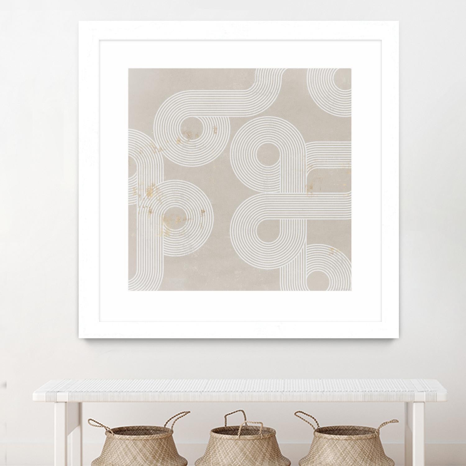 Œuvre d’art murale encadrée blanche et mate « Fluxus I » 30 x 30