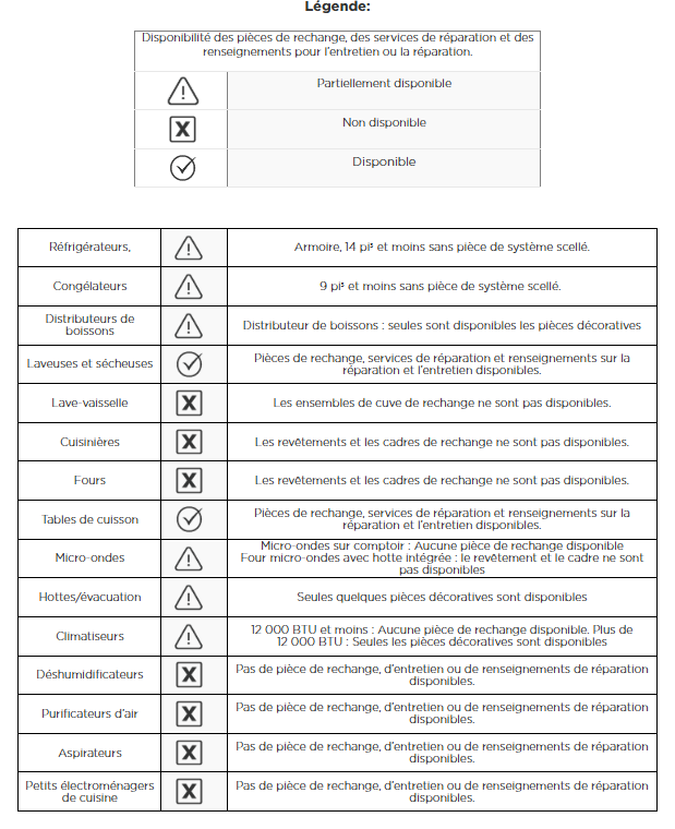 Caractéristiques de l'électroménager | Porte réversible, Mode sabbat |