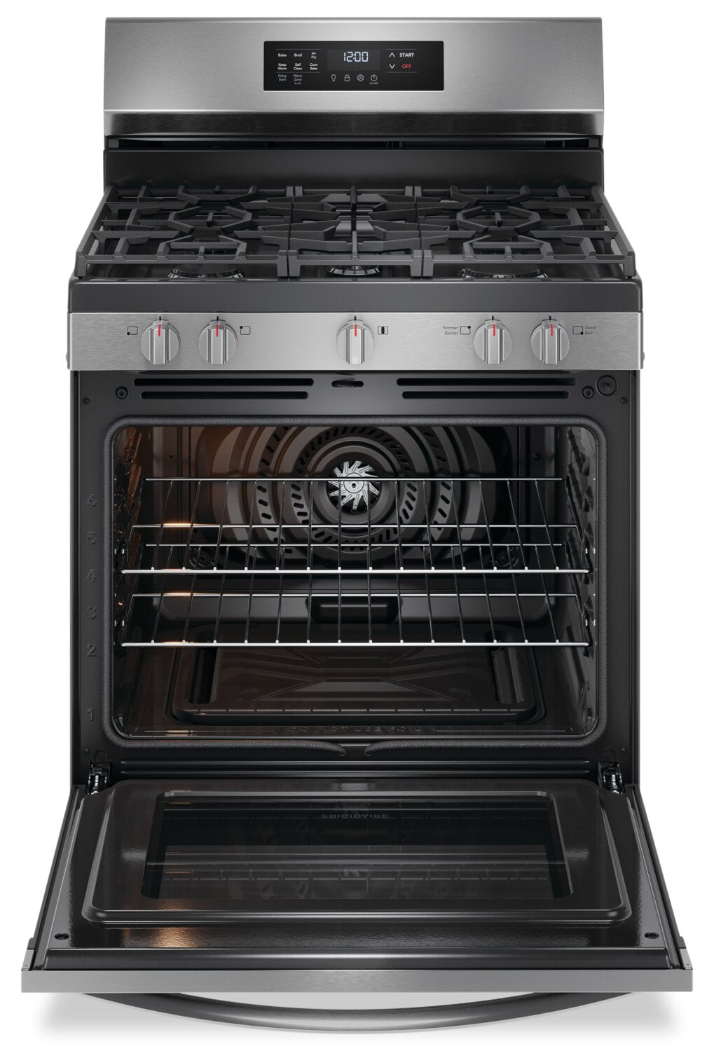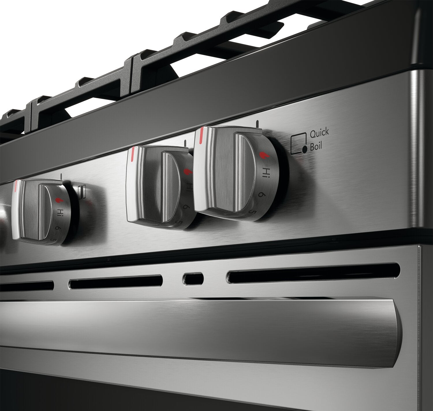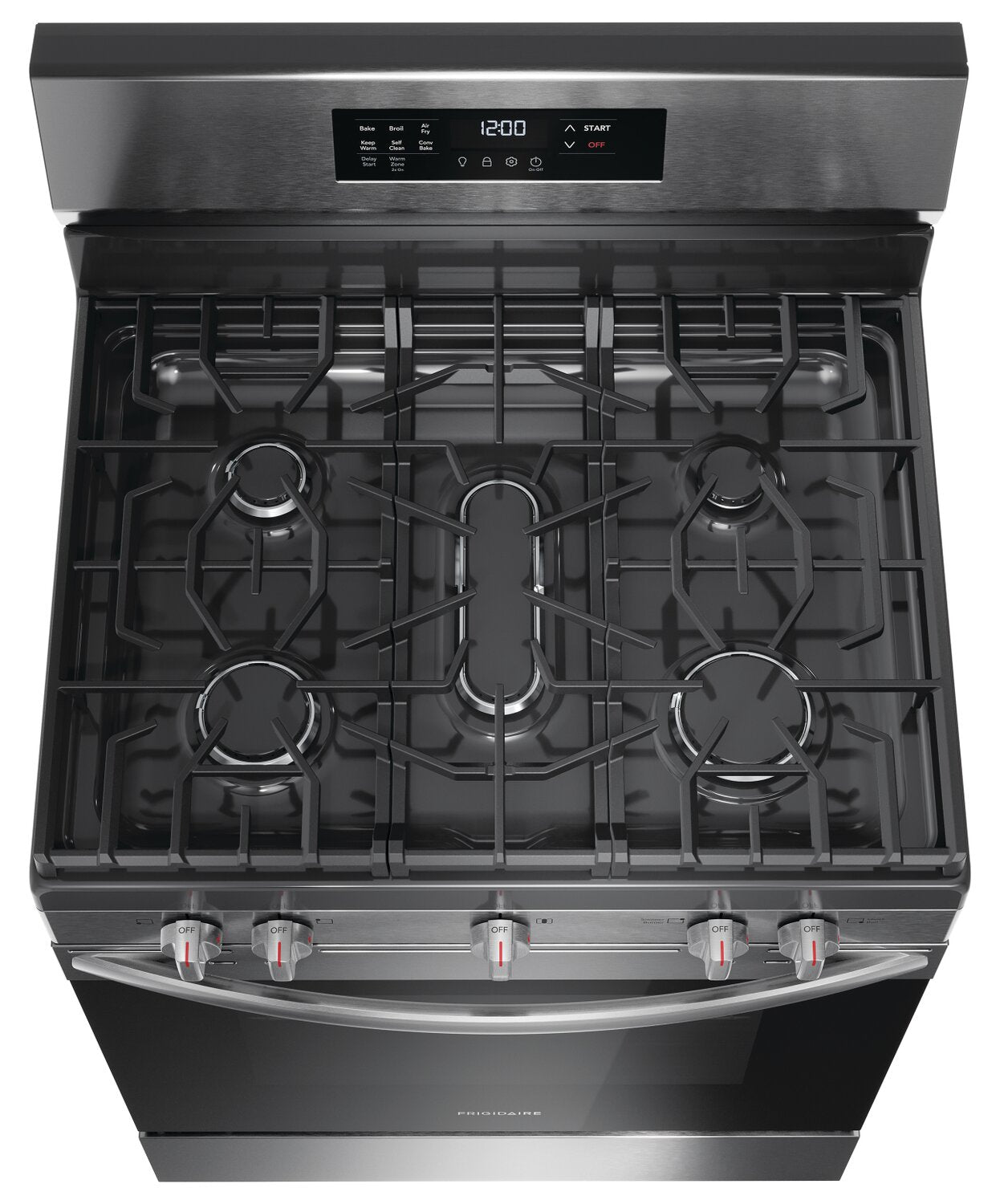 Friture à air Air Fry : Cuisson à convection : Surface de cuisson polyvalente à cinq brûleurs : Autonettoyage à une touche : Capuchons de brûleur lavables au lave-vaisselle : Grilles continues d'une bordure à l'autre : Très grand tiroir de rangement Store-MoreMC : |