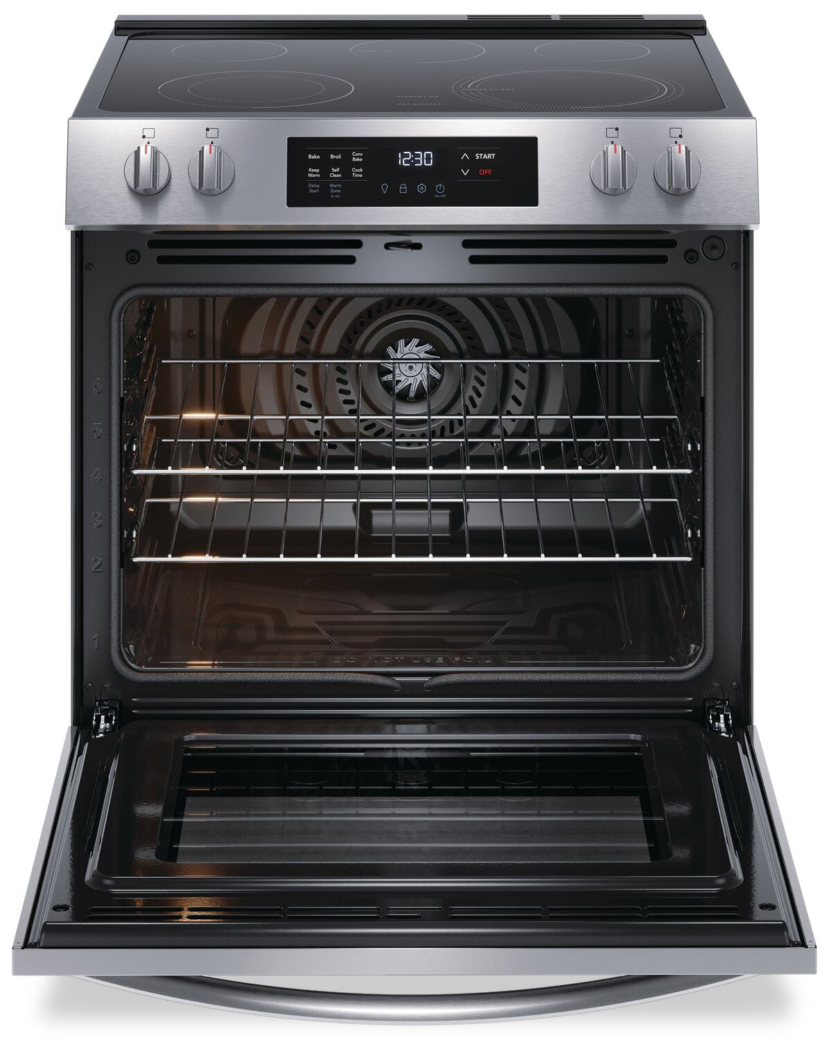 Cuisson à convection : Élément de surface de cuisson EvenTempMC : Surface de cuisson à cinq éléments : Autonettoyage à une touche : Élément extensible double SpaceWiseMD : Très grand tiroir de rangement Store-MoreMC : Apparence encastrée : |