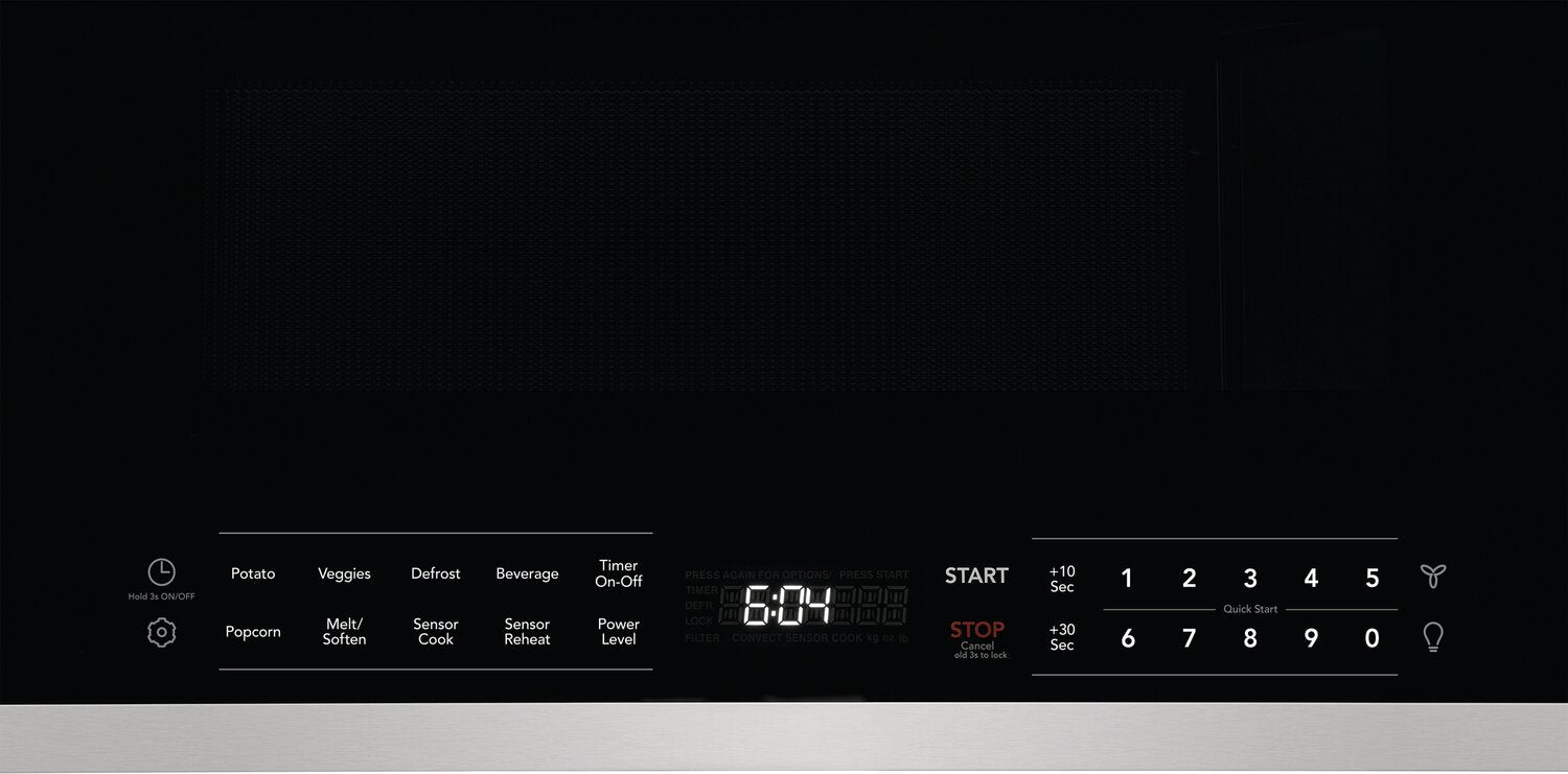 Cuisson par capteur : Filtre à air PureAirMD : Ventilation puissante : Intérieur Effortless CleanMC : Éclairage à DEL éclatante : Options de démarrage rapide : Voyant indicateur de remplacement du filtre : Porte à dégagement zéro : |