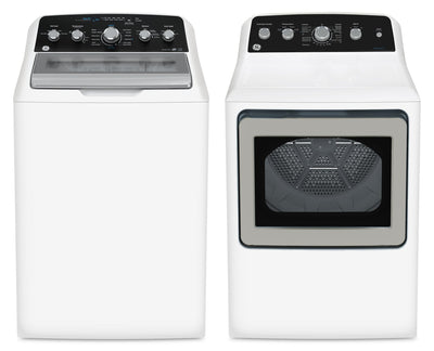 Laveuse à chargement par le haut de 4,9 pi3 et sécheuse électrique de 7,2 pi3 de GE avec cycle SaniFresh